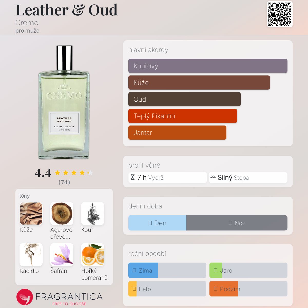 Leather & Oud podle Cremo je vůně pro muže. Leather & Oud byl/a uveden/a v roce 2017. Vrchní tóny jsou Šafrán a Hořký pomeranč; střední tóny jsouKůže, Kouř a Kadidlo ; základní tón je Agarové dřevo (oud).