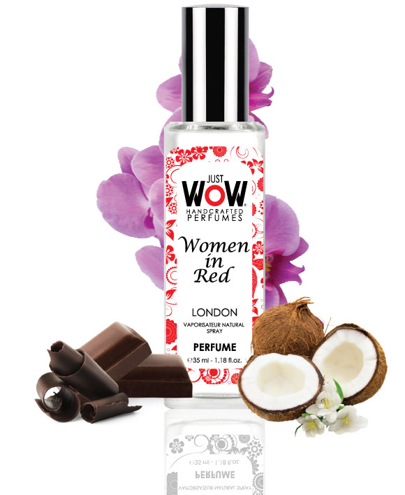 Just Wow Women In Red podle Croatian Perfume House je Floral Fruity Gourmand vůně pro ženy. Just Wow Women In Red byl/a uveden/a v roce 2017. "Nosem" za touto vůní je Tomislav Vrbanec. Vrchní tóny jsou Kokos, Cukrová vata, Jasmín, List černého rybízu, Mandarinka a Meloun; střední tóny jsouŠvestka, Med, Orchidej, Jasmín, Meruňka, Růže, Konvalinka a Broskev ; základní tóny jsou Čokoláda, Karamel, Jantar (ambra), Fazole tonka, Pačuli, Pižmo a Vanilka.