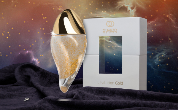 Levitation Gold podle Cuarzo The Circle je Floral Woody Musk vůně pro ženy a muže. Levitation Gold byl/a uveden/a v roce 2014. "Nosem" za touto vůní je Ramón Béjar. Vrchní tóny jsou Mandarinka, Bergamot a Červené bobule; střední tóny jsouJasmín, Květ afrického pomeranče, Růže a Magnólie ; základní tóny jsou Pižmo, Extrakt z bílého cedru a Santalové dřevo.