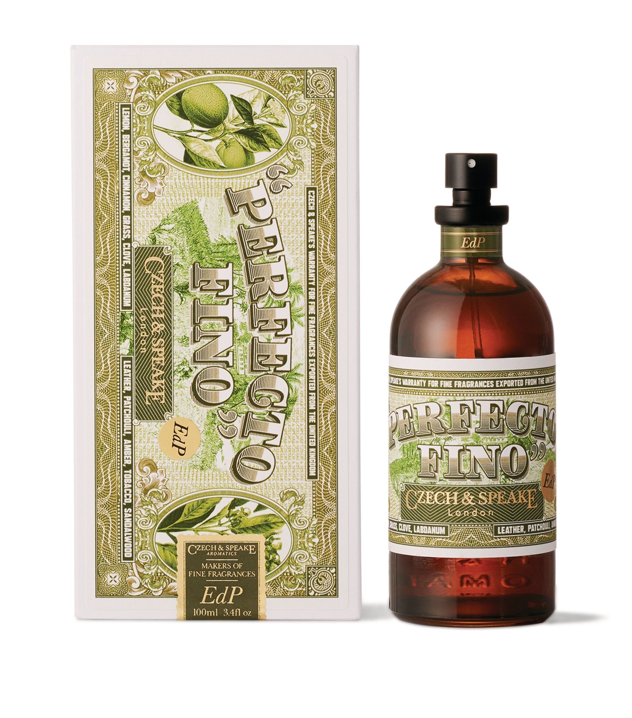 Perfecto Fino Eau de Parfum podle Czech & Speake je Orientální Woody vůně pro ženy a muže. Perfecto Fino Eau de Parfum byl/a uveden/a v roce 2021. Vrchní tóny jsou Bergamot a Citrón; střední tóny jsouHřebíček, Skořice a Tráva ; základní tóny jsou Tabák, Kůže, Labdanum, Pačuli, Santalové dřevo a Jantar (ambra).