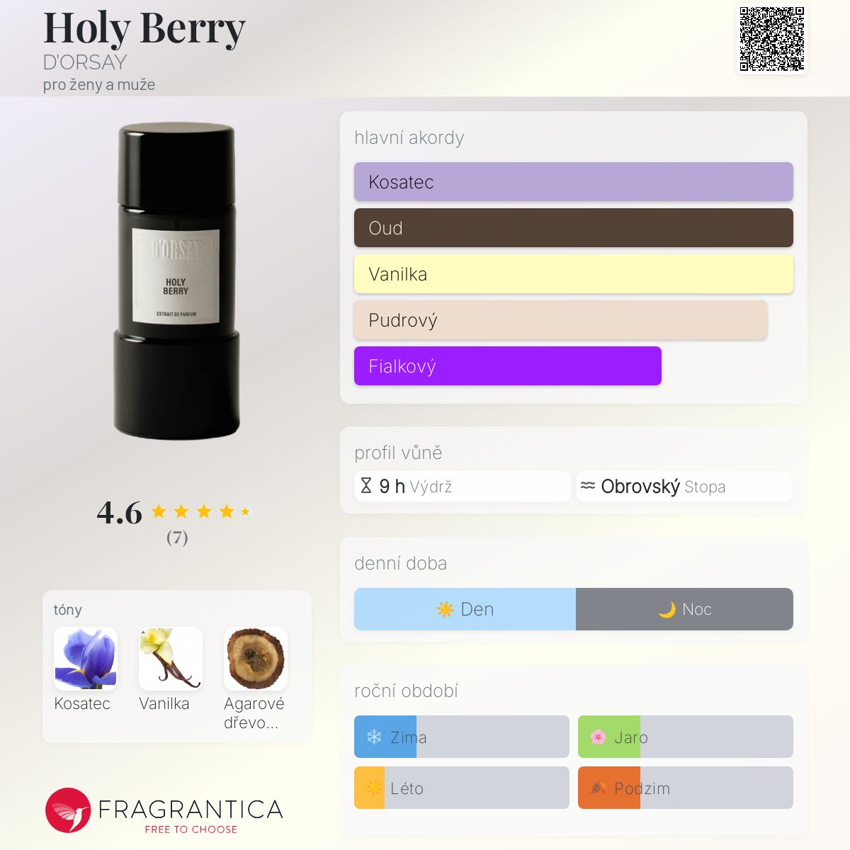 Holy Berry podle D’ORSAY je vůně pro ženy a muže. Holy Berry byl/a uveden/a v roce 2025. "Nosem" za touto vůní je Tanguy Guesnet. střední tón jeKosatec ; základní tóny jsou Vanilka a Agarové dřevo (oud).