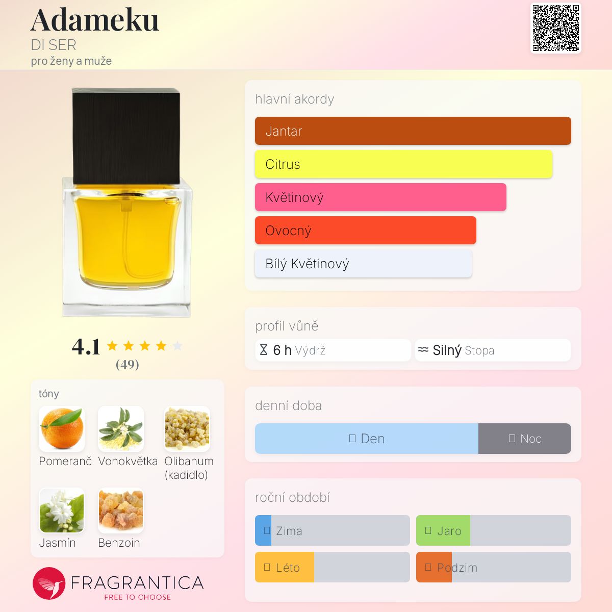 Adameku podle DI SER je Floral Fruity vůně pro ženy a muže. "Nosem" za touto vůní je Yasuyuki Shinohara. Vrchní tón je Sladký pomeranč ; střední tóny jsouVonokvětka a Jasmín Sambac ; základní tóny jsou Olibanum a Benzoin.