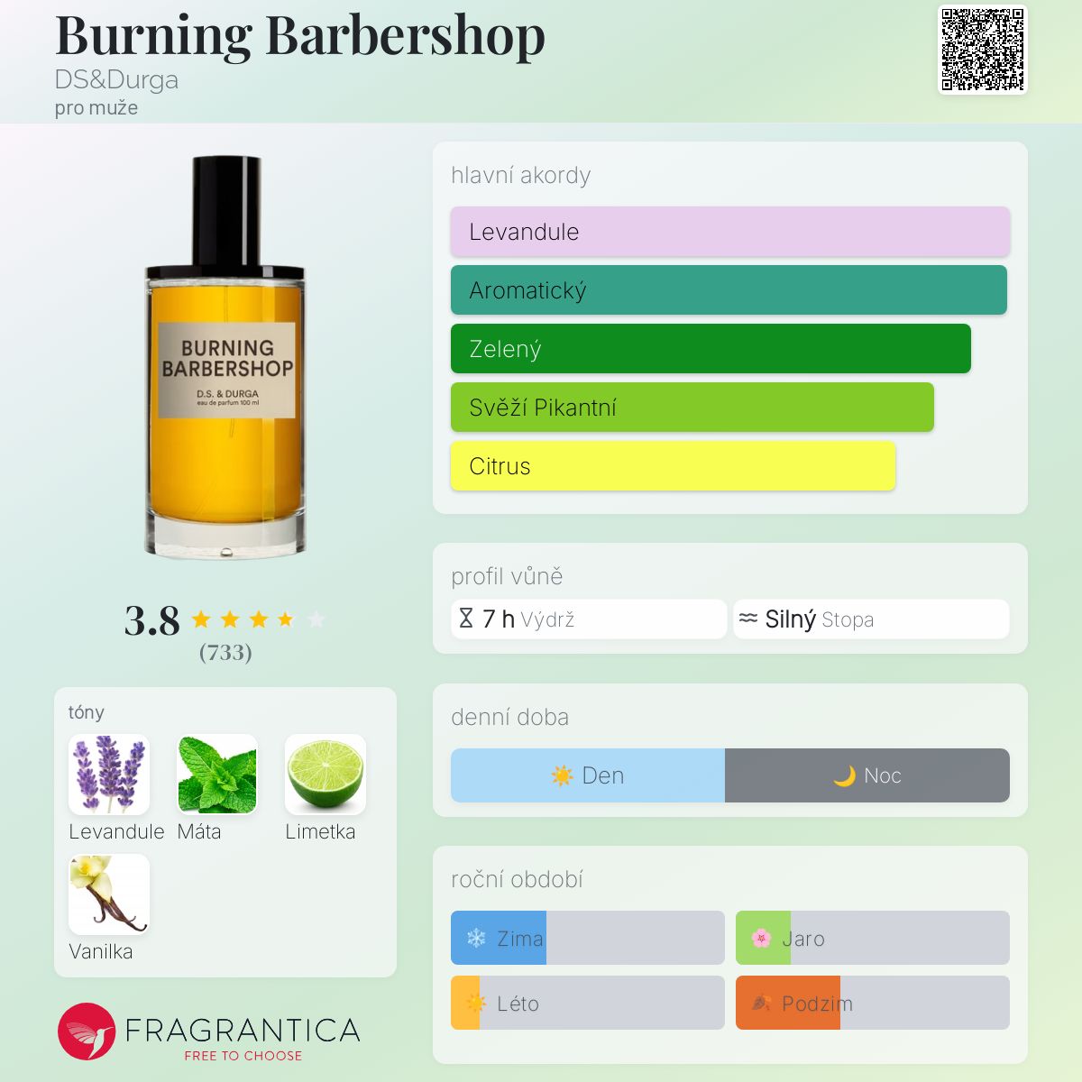 Burning Barbershop podle DS&Durga je Aromatic vůně pro muže. Burning Barbershop byl/a uveden/a v roce 2010. "Nosem" za touto vůní je David Seth Moltz.