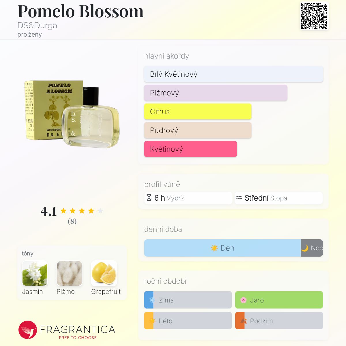 Pomelo Blossom podle DS&Durga je Floral Fruity vůně pro ženy. Pomelo Blossom byl/a uveden/a v roce 2010. "Nosem" za touto vůní je David Seth Moltz.