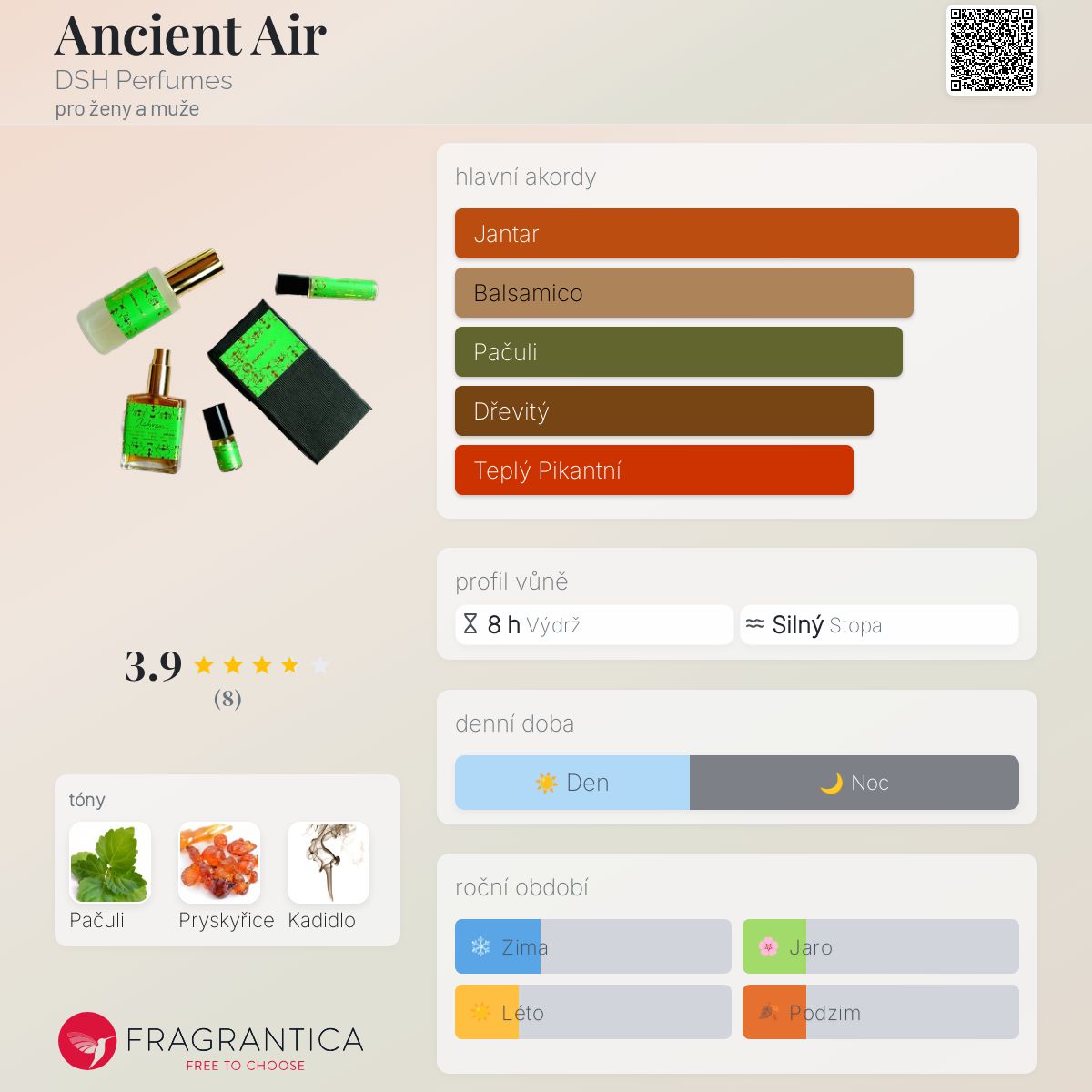 Ancient Air podle DSH Perfumes je Orientální Woody vůně pro ženy a muže. "Nosem" za touto vůní je Dawn Spencer Hurwitz.