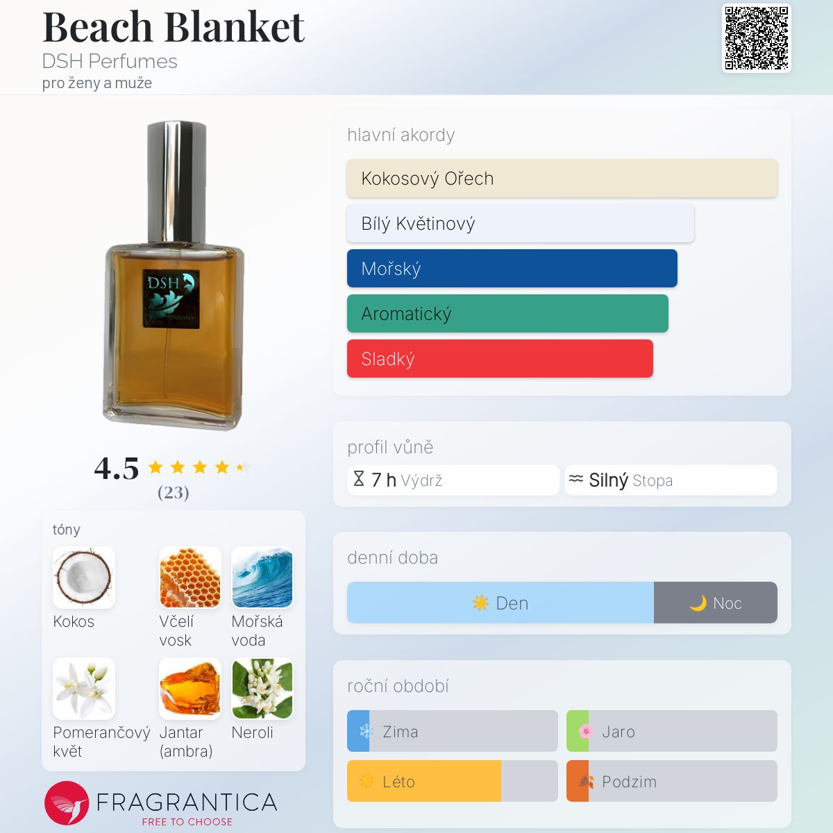 Beach Blanket podle DSH Perfumes je Orientální Floral vůně pro ženy a muže. Beach Blanket byla spuštěna během 2000. "Nosem" za touto vůní je Dawn Spencer Hurwitz.