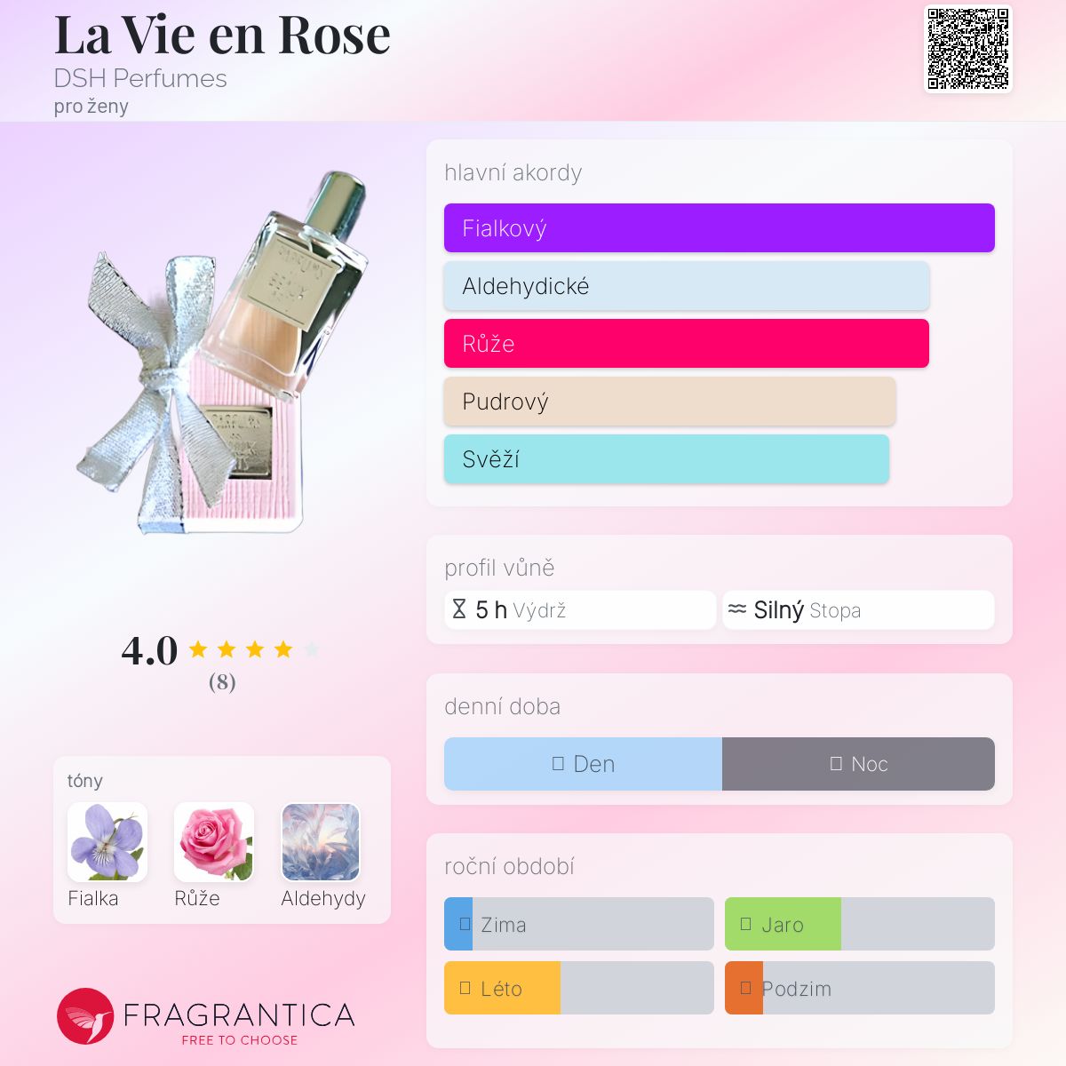 La Vie en Rose podle DSH Perfumes je Floral Aldehyde vůně pro ženy. "Nosem" za touto vůní je Dawn Spencer Hurwitz.
