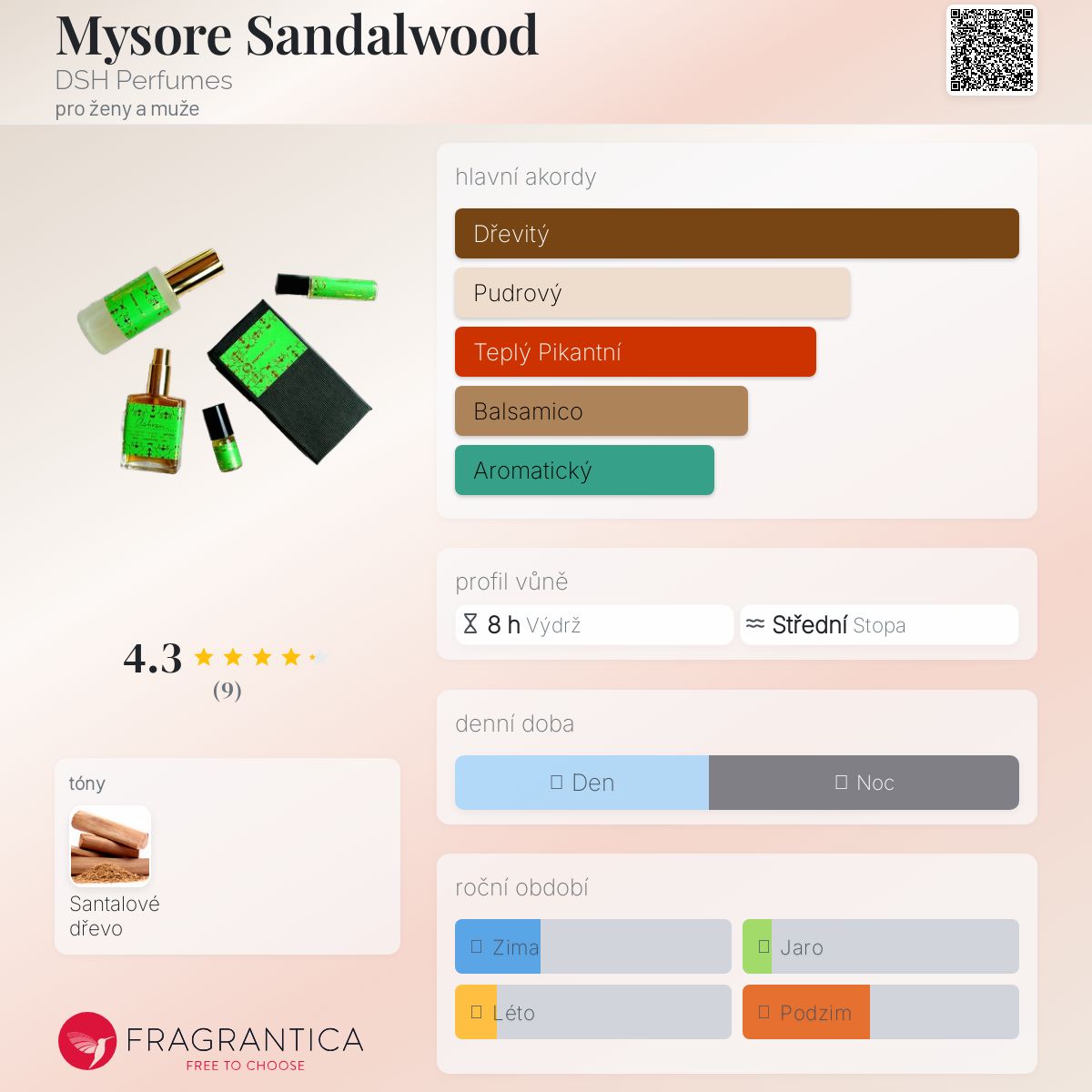 Mysore Sandalwood podle DSH Perfumes je Orientální Woody vůně pro ženy a muže. "Nosem" za touto vůní je Dawn Spencer Hurwitz.