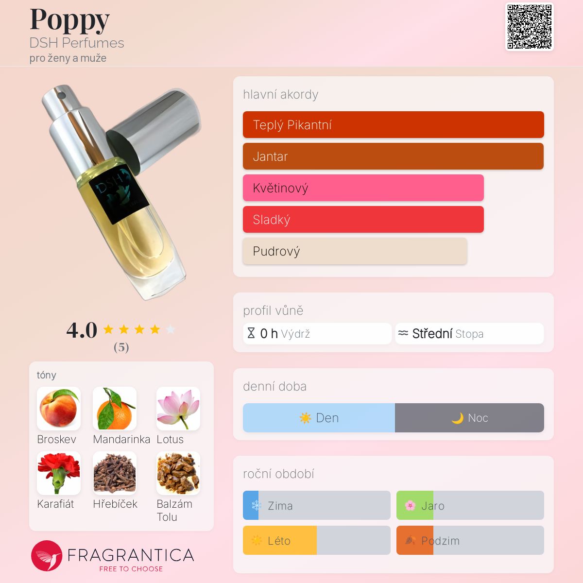Poppy podle DSH Perfumes je Orientální vůně pro ženy a muže. Poppy byl/a uveden/a v roce 2017. "Nosem" za touto vůní je Dawn Spencer Hurwitz.