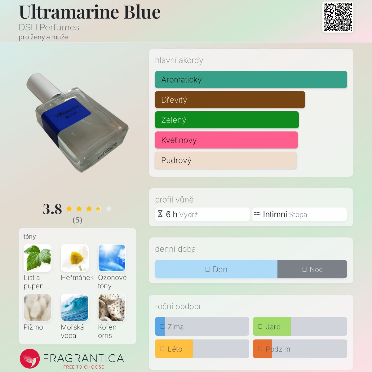 Ultramarine Blue podle DSH Perfumes je Aromatic Aquatic vůně pro ženy a muže. Ultramarine Blue byl/a uveden/a v roce 2015. "Nosem" za touto vůní je Dawn Spencer Hurwitz.