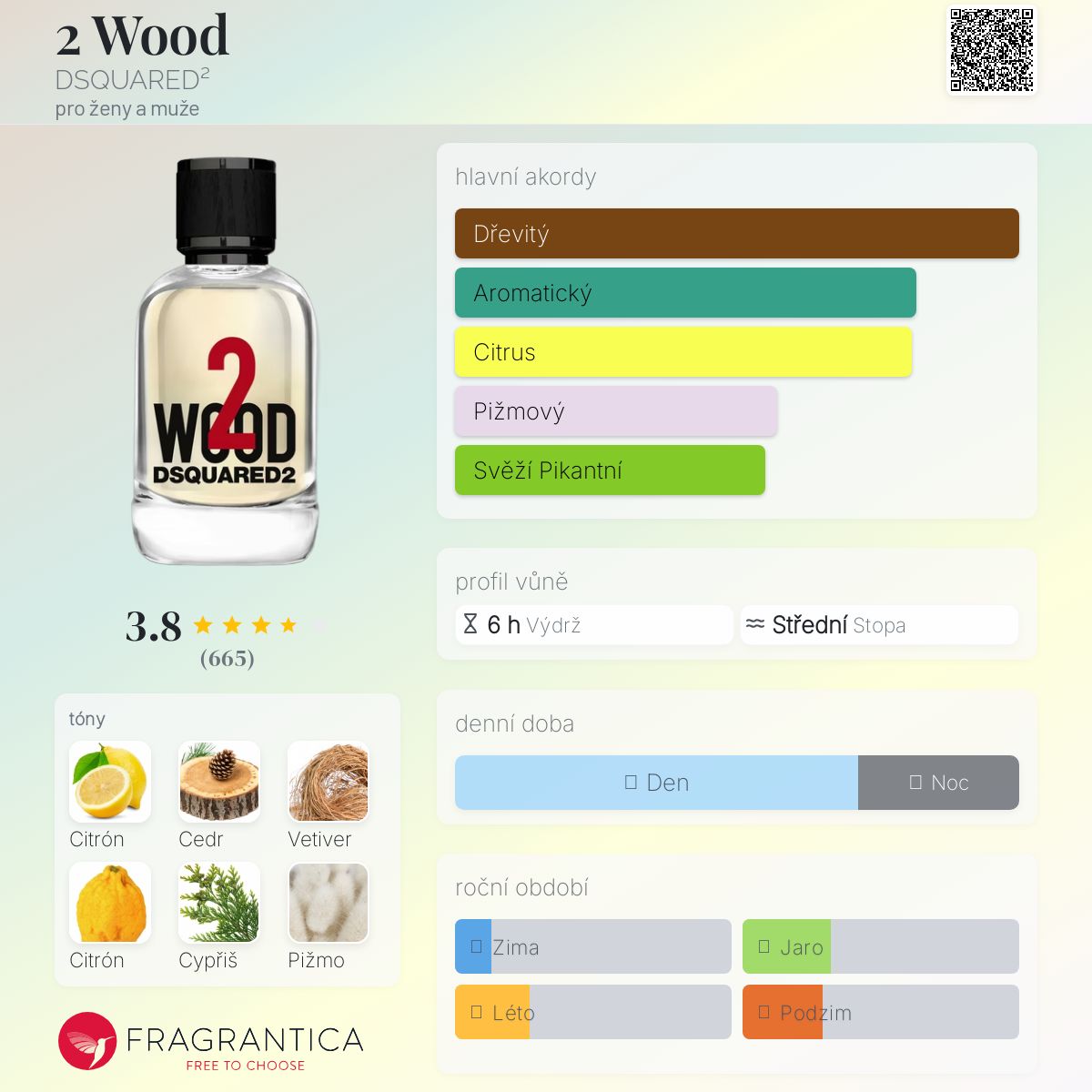 2 Wood podle DSQUARED² je Woody Floral Musk vůně pro ženy a muže. 2 Wood byl/a uveden/a v roce 2021. "Nosem" za touto vůní je Olivier Cresp. Vrchní tóny jsou Citrón, Citrón a Růžový pepř; střední tóny jsouCedr, Haitský vetiver, Cypřiš a Jedle bělokorá ; základní tóny jsou Pižmo a Jantar (ambra).