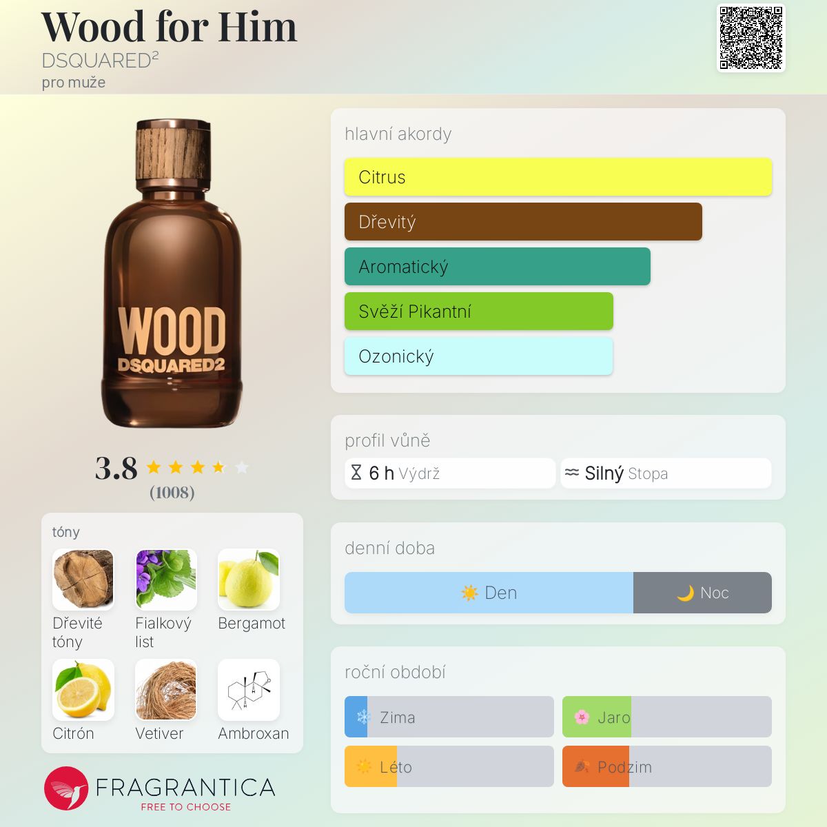 Wood for Him podle DSQUARED² je Woody Floral Musk vůně pro muže. Wood for Him byl/a uveden/a v roce 2018. Vrchní tóny jsou Kalábrijský bergamot, Sicilský citron a Mandarinka; střední tóny jsouFialkový list, Zázvor a Kardamom ; základní tóny jsou Bílé dřevo, Vetiver a Ambroxan.