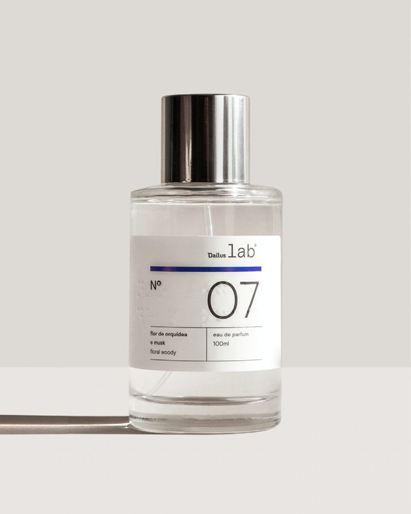 Nº 07 podle Dailus Lab je Floral Woody Musk vůně pro ženy a muže. Nº 07 byl/a uveden/a v roce 2023. "Nosem" za touto vůní je Elizabeth Oliveira. Vrchní tóny jsou Levandule, Limetka, Bergamot, Mandarinka a Zázvor; střední tóny jsouOrchidej, Jasmín, Heřmánek, Frézie a Muškátový oříšek ; základní tóny jsou Pižmo, Vanilka, Santalové dřevo a Jantar (ambra).