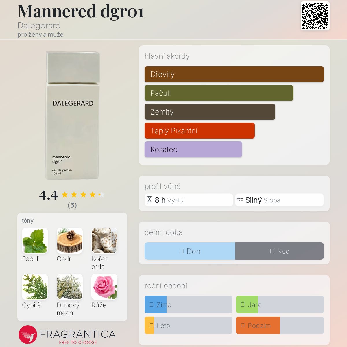 Mannered dgr01 podle Dalegerard je Woody Chypre vůně pro ženy a muže. Mannered dgr01 byl/a uveden/a v roce 2018. "Nosem" za touto vůní je Pascal Gaurin.