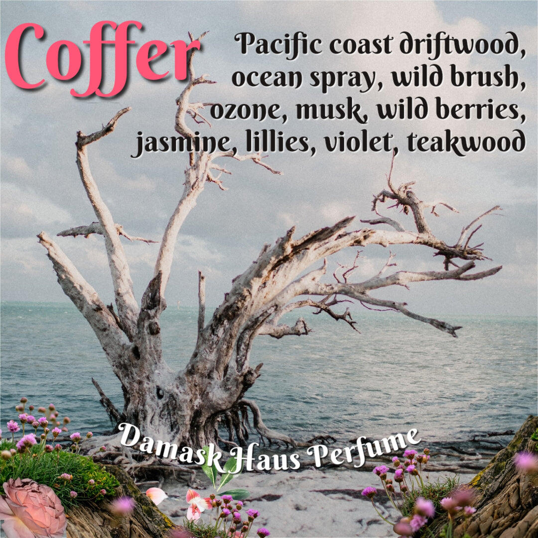 Coffer podle Damask Haus je Floral Woody Musk vůně pro ženy a muže. Coffer byl/a uveden/a v roce 2021. "Nosem" za touto vůní je Bri Beyer. Vrchní tóny jsou Ozonové tóny a Lesní plody; střední tóny jsouLilie, Fialka a Jasmín ; základní tóny jsou Naplavené dříví, Týkové dřevo, Dřevité tóny a Pižmo.