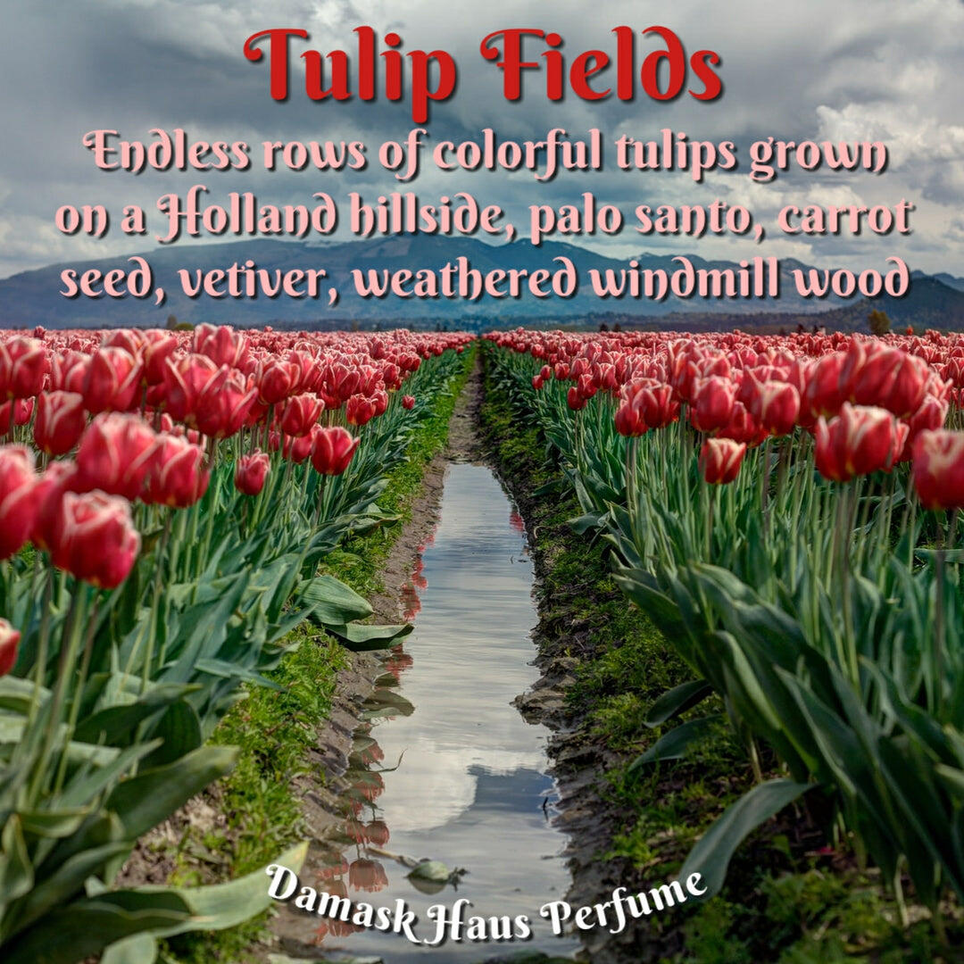 Tulip Fields podle Damask Haus je Woody Aromatic vůně pro ženy a muže. Tulip Fields byl/a uveden/a v roce 2022. "Nosem" za touto vůní je Bri Beyer. Vrchní tón je Tulipán ; střední tón jeSemena mrkve ; základní tóny jsou Vetiver, Dřevité tóny a Palo Santo.