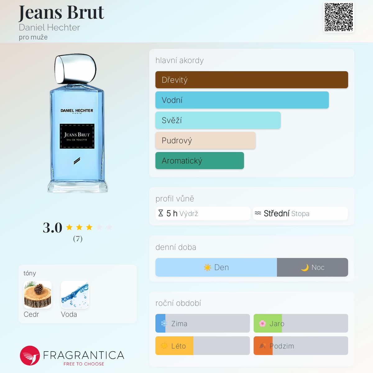 Jeans Brut podle Daniel Hechter je Woody Aromatic vůně pro muže. Jeans Brut byl/a uveden/a v roce 2014. "Nosem" za touto vůní je Francis Kurkdjian.