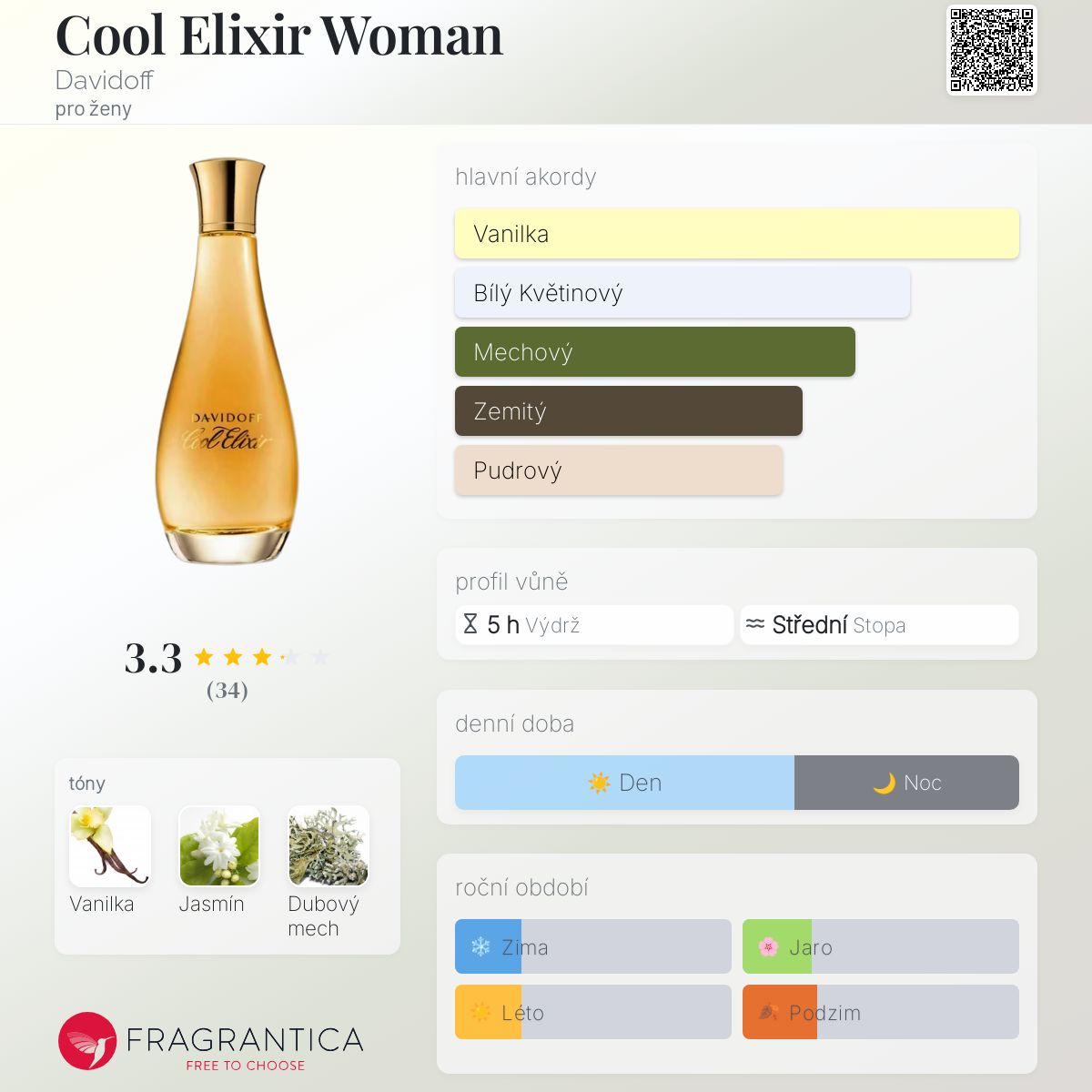 Cool Elixir Woman podle Davidoff je Orientální Vanilla vůně pro ženy. Toto je nová vůně. Cool Elixir Woman byl/a uveden/a v roce 2025.