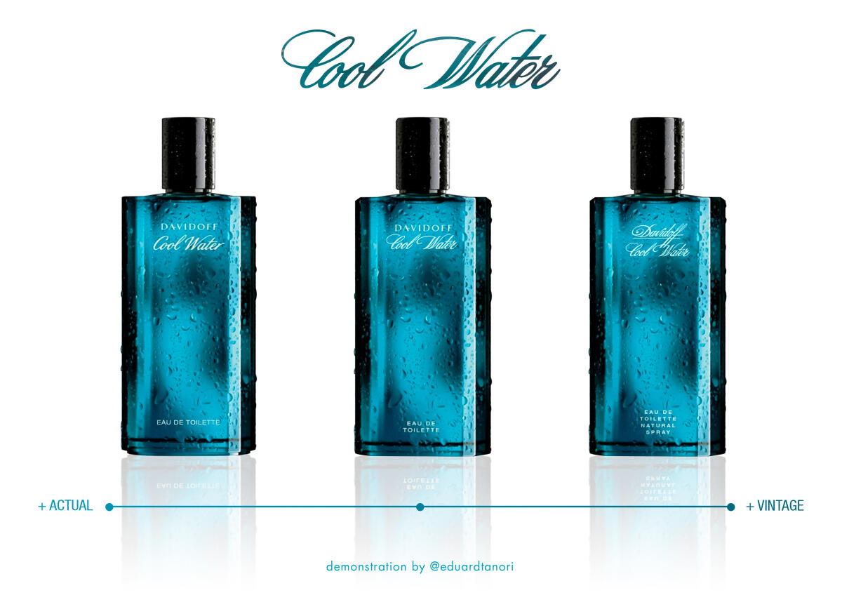 Cool Water je fotografií přechodu z osmdesátých do devadesátých let v pánské parfumerii, nesměle započatého již průkopnickým Drakkarem Noir. Představuje ideální okamžik v používání kalonu, než začal být zneužíván, aby naplno vstoupil do éry akvatiky.