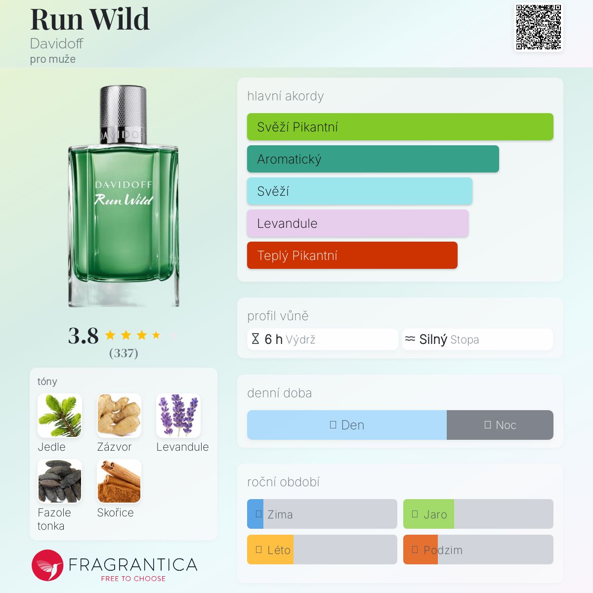 Run Wild podle Davidoff je Aromatic Spicy vůně pro muže. Run Wild byl/a uveden/a v roce 2019. Run Wild byl/a vytvořen/a Alexandra Carlin a Pierre-Constantin Guéros. Vrchní tóny jsou Zázvor a Skořice; střední tón jeLevandule ; základní tóny jsou Jedlová pryskyřice a Fazole tonka.