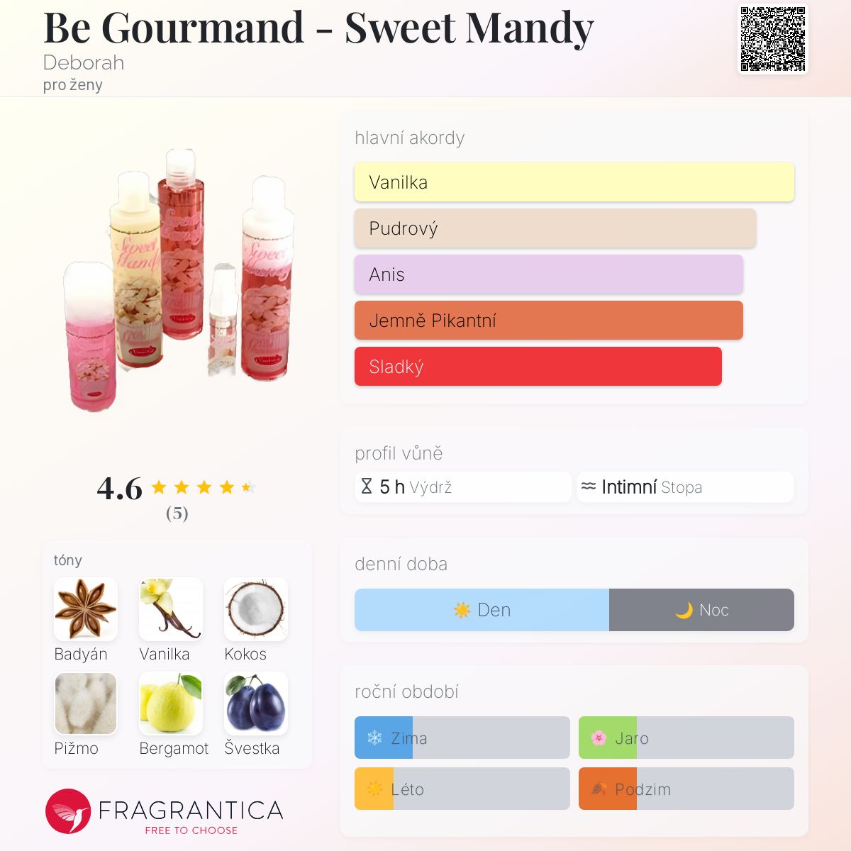 Hodnocení parfému 4.60 z 5 s 5 hlasy