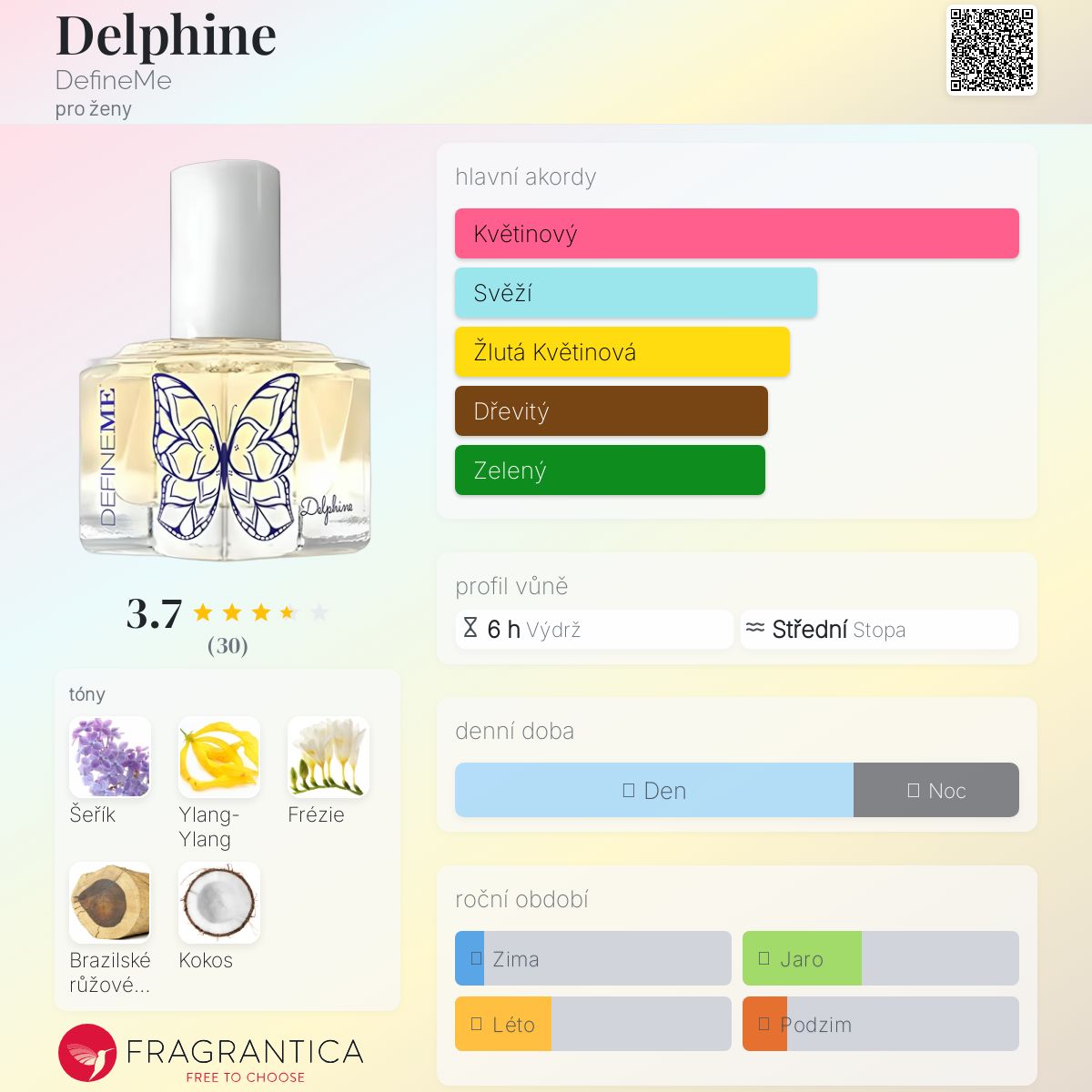 Delphine podle DefineMe je Floral vůně pro ženy. Delphine byl/a uveden/a v roce 2017. "Nosem" za touto vůní je Jennifer McKay Newton.
