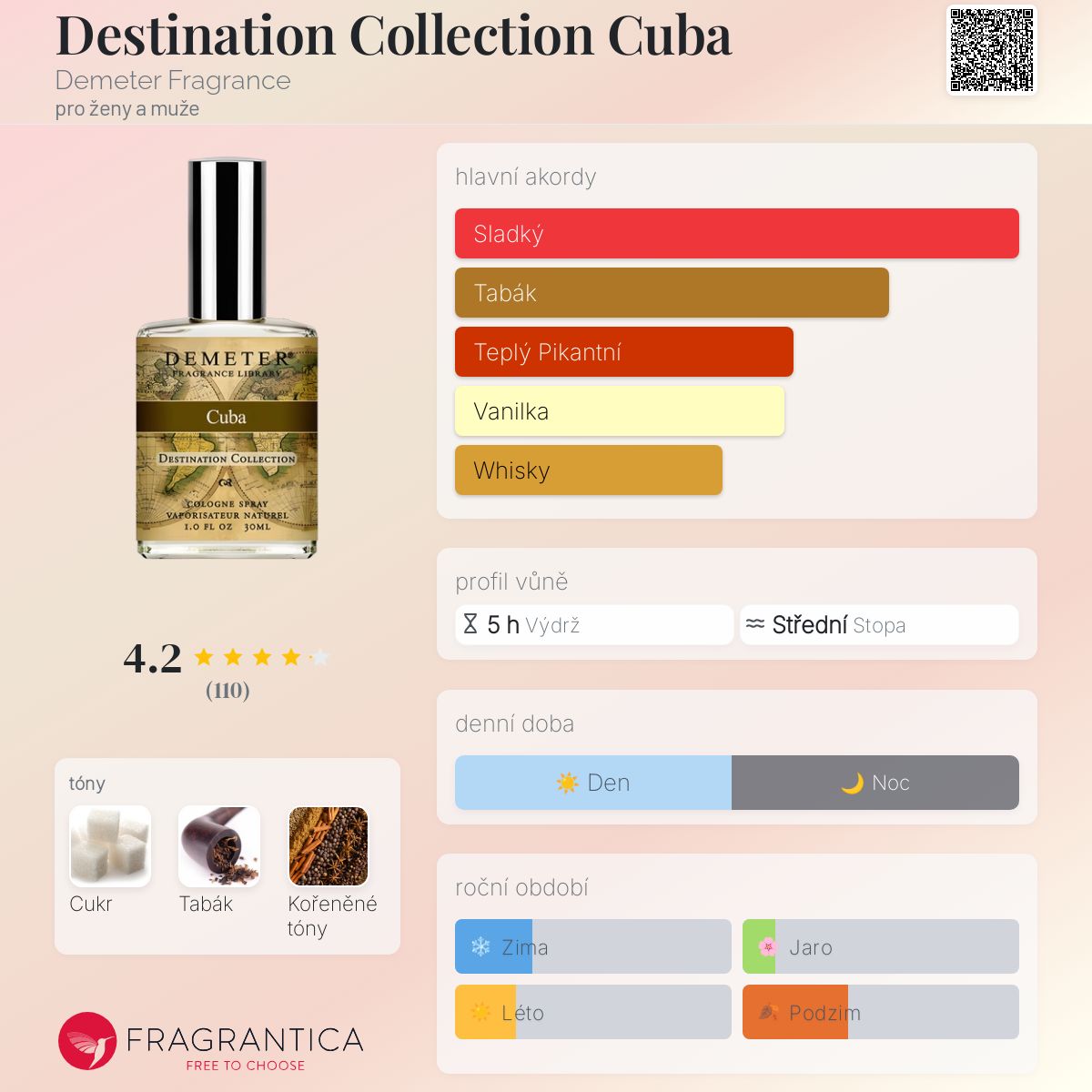 Destination Collection Cuba podle Demeter Fragrance je Aromatic Spicy vůně pro ženy a muže. Destination Collection Cuba byl/a uveden/a v roce 2015.