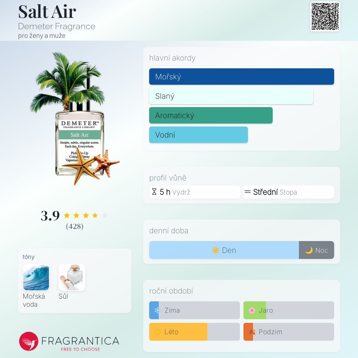 Salt Air podle Demeter Fragrance je Aromatic Aquatic vůně pro ženy a muže. Salt Air byla spuštěna během 2000.