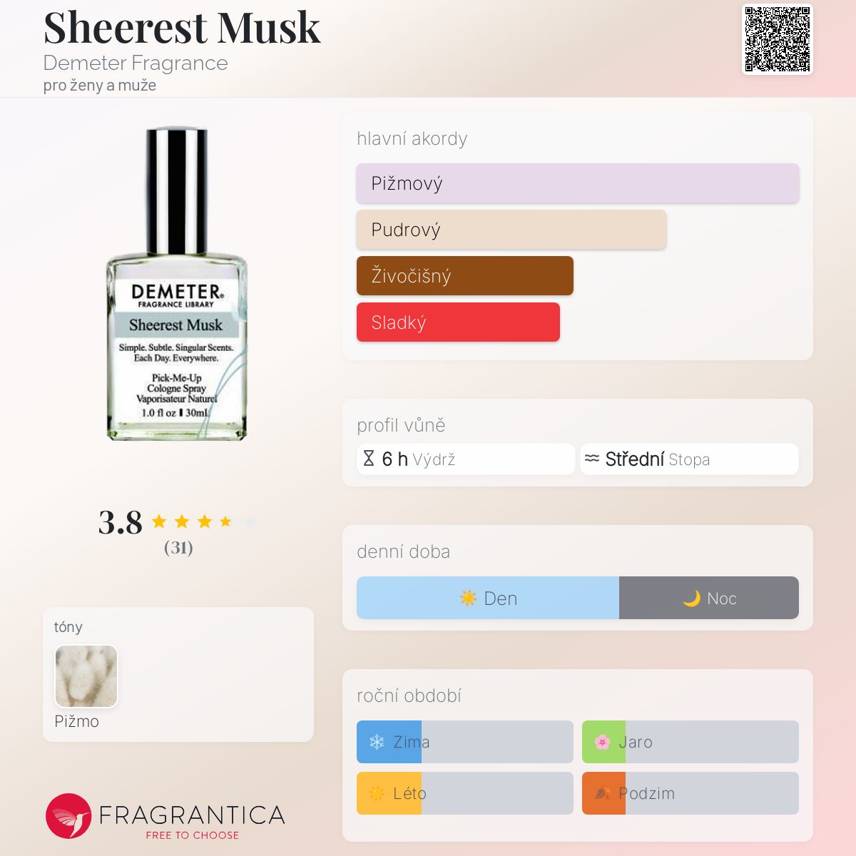 Sheerest Musk podle Demeter Fragrance je Aromatic vůně pro ženy a muže. Sheerest Musk byl/a uveden/a v roce 2017.