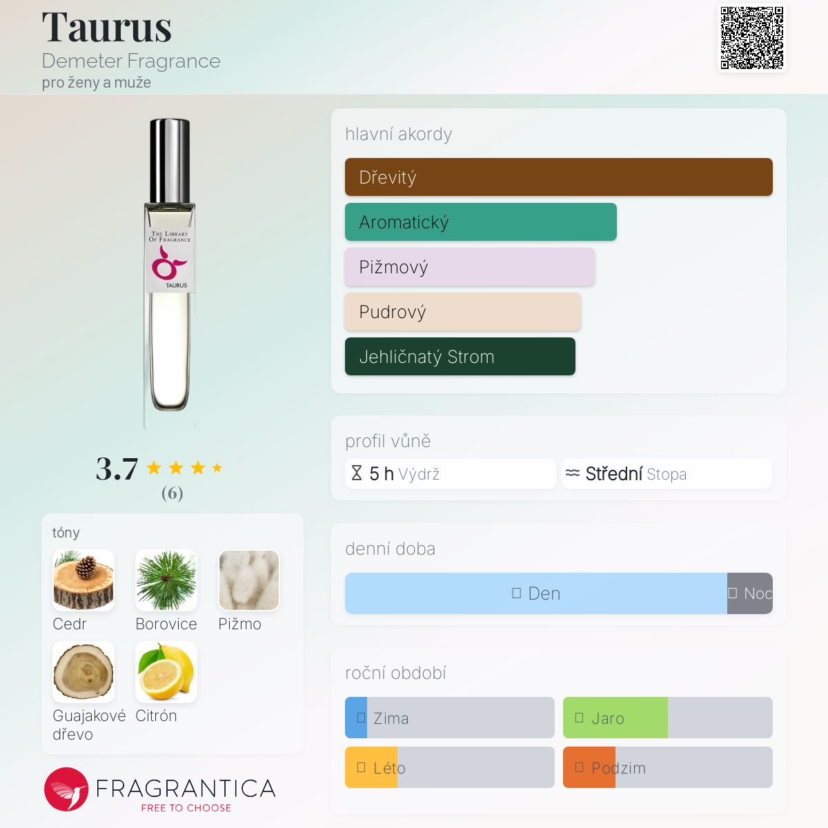 Taurus podle Demeter Fragrance je Woody Aromatic vůně pro ženy a muže. Taurus byl/a uveden/a v roce 2015.