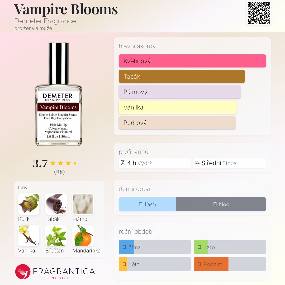 Vampire Blooms podle Demeter Fragrance je Floral vůně pro ženy a muže. Vampire Blooms byl/a uveden/a v roce 2021.