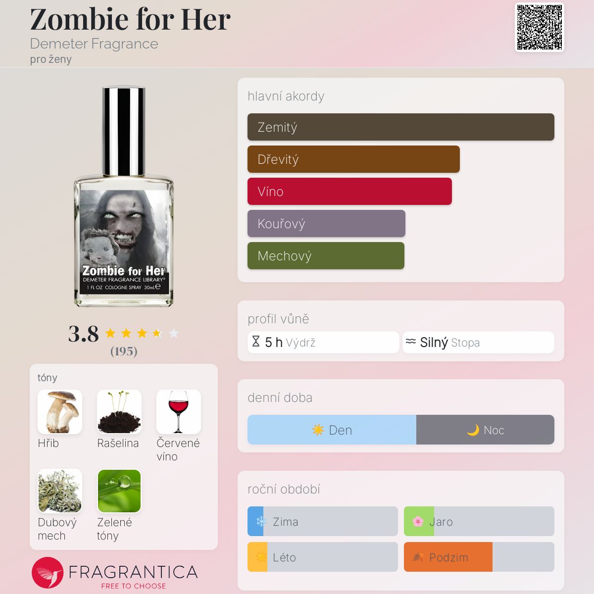 Zombie for Her podle Demeter Fragrance je Chypre vůně pro ženy. Zombie for Her byl/a uveden/a v roce 2013.
