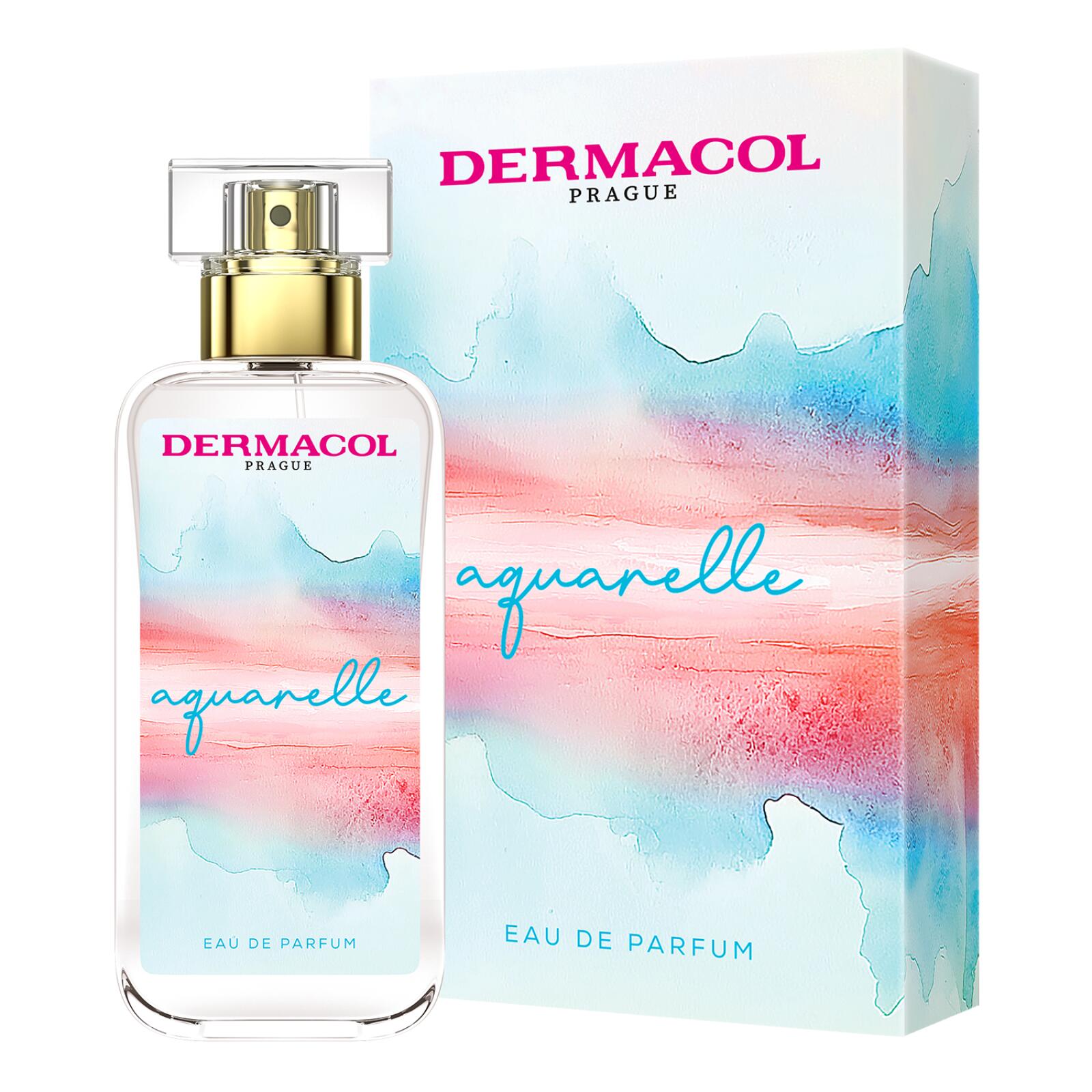 Aquarelle podle Dermacol je Floral Aquatic vůně pro ženy. Vrchní tóny jsou Růžový pepř, Bergamot, Mandarinka, Citrón a Máta; střední tóny jsouMořské tóny, Pelargónie, Jasmín, Fialka a Růže ; základní tóny jsou Olibanum, Jantar (ambra) a Pižmo.