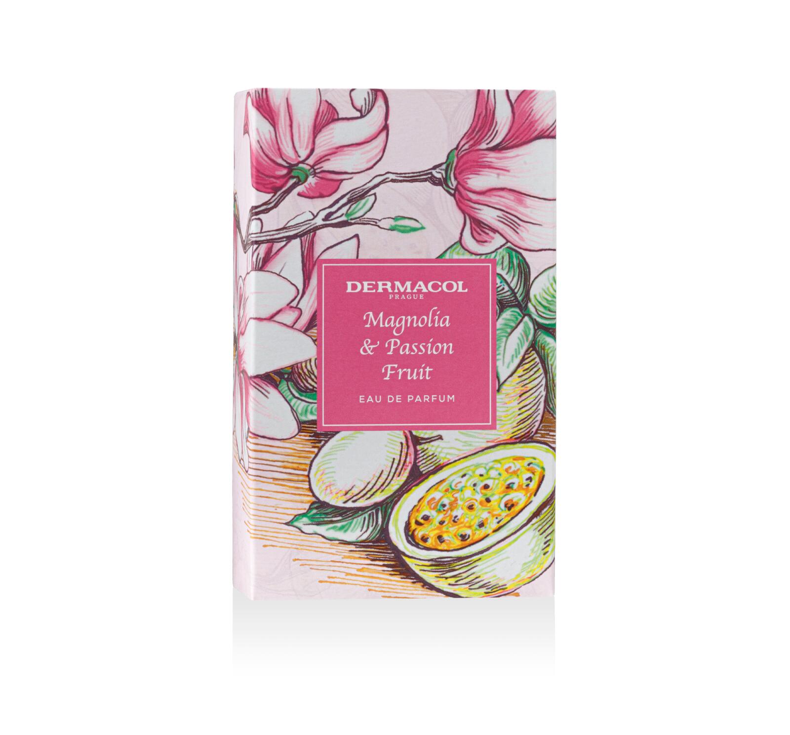 Magnolia and Passion Fruit podle Dermacol je Floral Fruity vůně pro ženy. Vrchní tóny jsou Bergamot, Magnólie, Frézie, Černý rybíz a Citrón; střední tóny jsouKonvalinka, Broskev a Pivoňka ; základní tóny jsou Ambra, Cedr, Dubový mech a Pižmo.