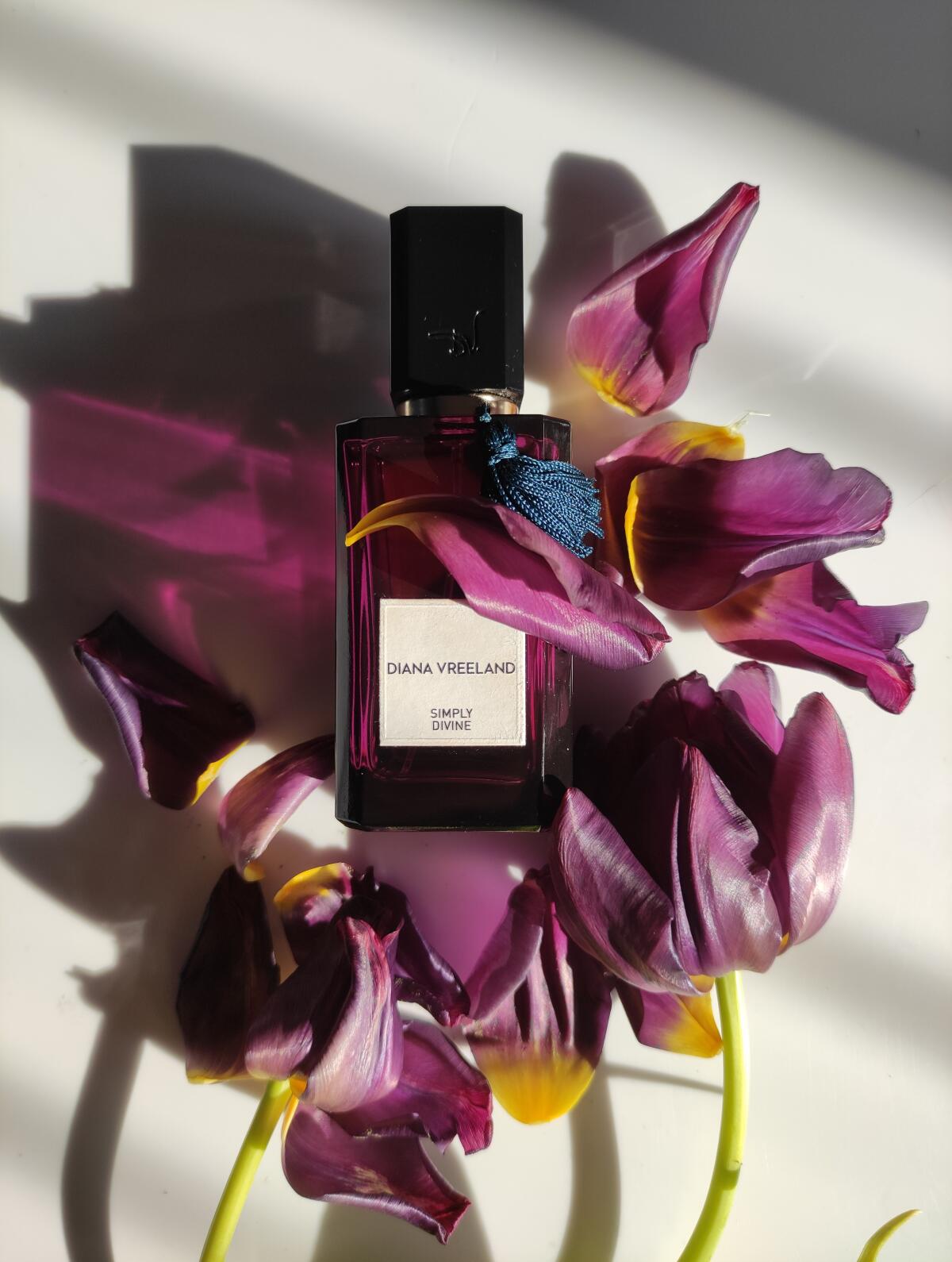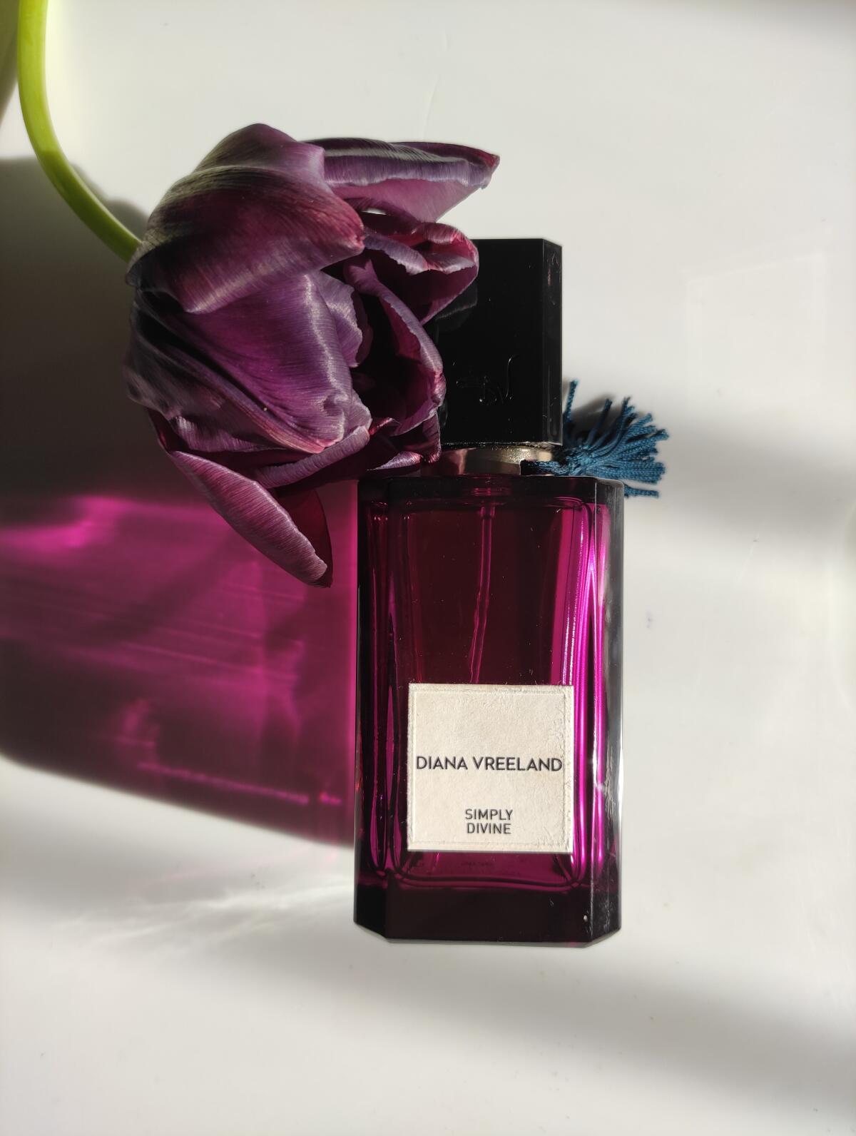 Simply Divine podle Diana Vreeland je Floral vůně pro ženy. Simply Divine byl/a uveden/a v roce 2014. "Nosem" za touto vůní je Clement Gavarry. Vrchní tóny jsou Zelené listí a Muškátový oříšek; střední tóny jsouTuberóza, Egyptský jasmín a Pomerančový květ ; základní tóny jsou Kašmírové dřevo, Pižmo, Santalové dřevo a Fazole tonka.