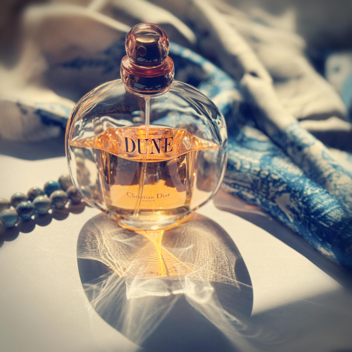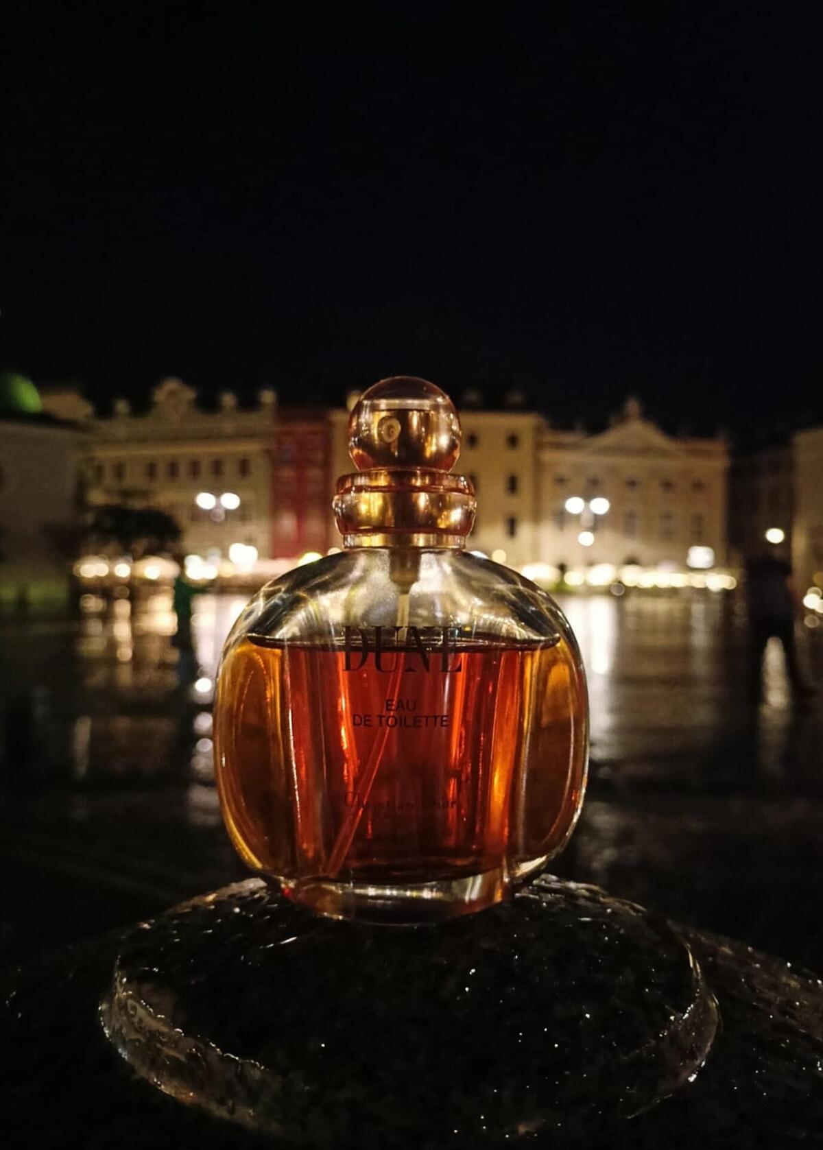 Dune má nápadnou dřevitost růžového a santalového dřeva, ale stejně tak je jemně květinová. Dune má svěží citrusy, ale zároveň je jantarová, krémová a hřejivá. Dune je průzračná, jasná a sluneční, ale zároveň je uzavřená, střízlivá a sofistikovaná. Je to parfém plný kontrastů a protikladů, ale VELMI vyvážený, velmi rafinovaný a dobře provedený.