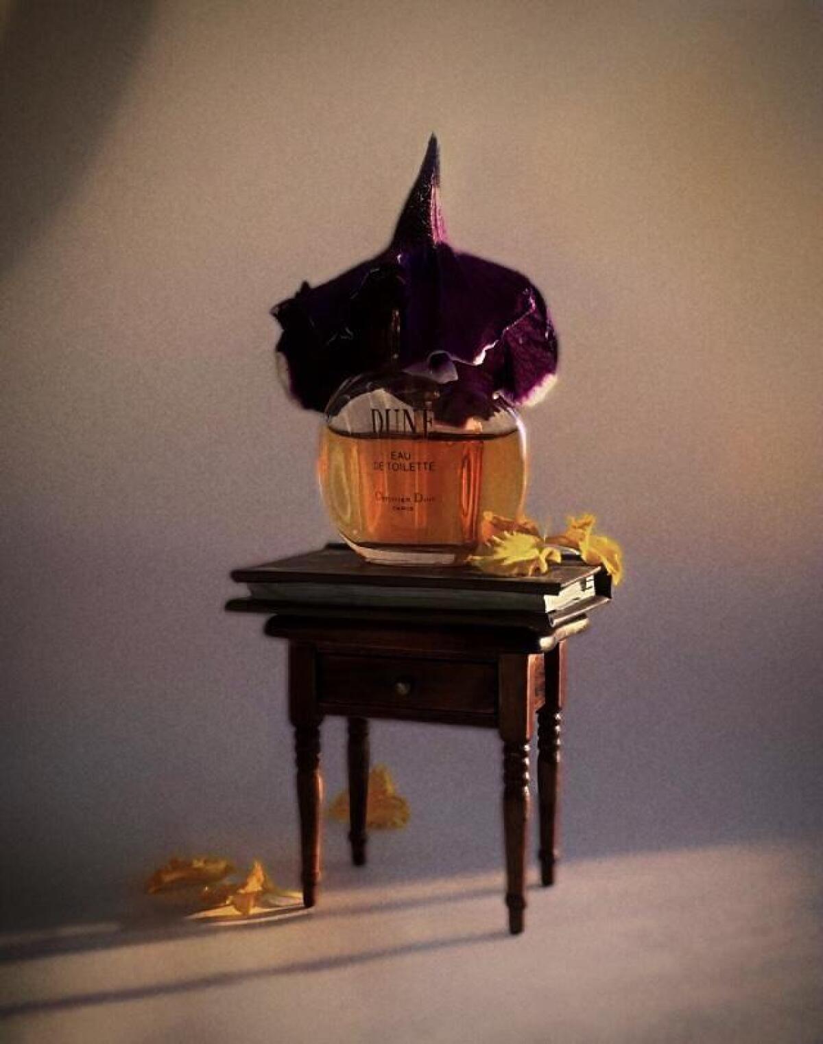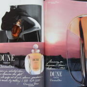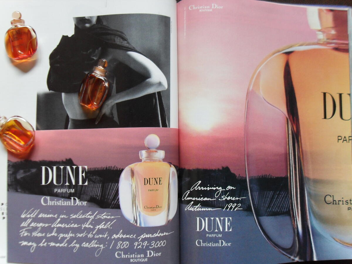 Diore, kdo tě viděl a kdo tě vidí! Dune nikdy nebyla velkým hitem, vždy to byla spíše experimentální, menšinová vůně, jakési kultovní tajemství pro zasvěcené, podobně jako Feminité du Bois nebo Aromatics Elixir, které měly své malé, ale věrné příznivce. Byla něčím na půli cesty mezi opulentními květinami osmdesátých let a anemickými ozónovými devadesátými lety, před těmi zářivými dřevitě bílými pižmy počátku tisíciletí. Dnes je napůl přerušena a zredukována na výpovědní drobnost.