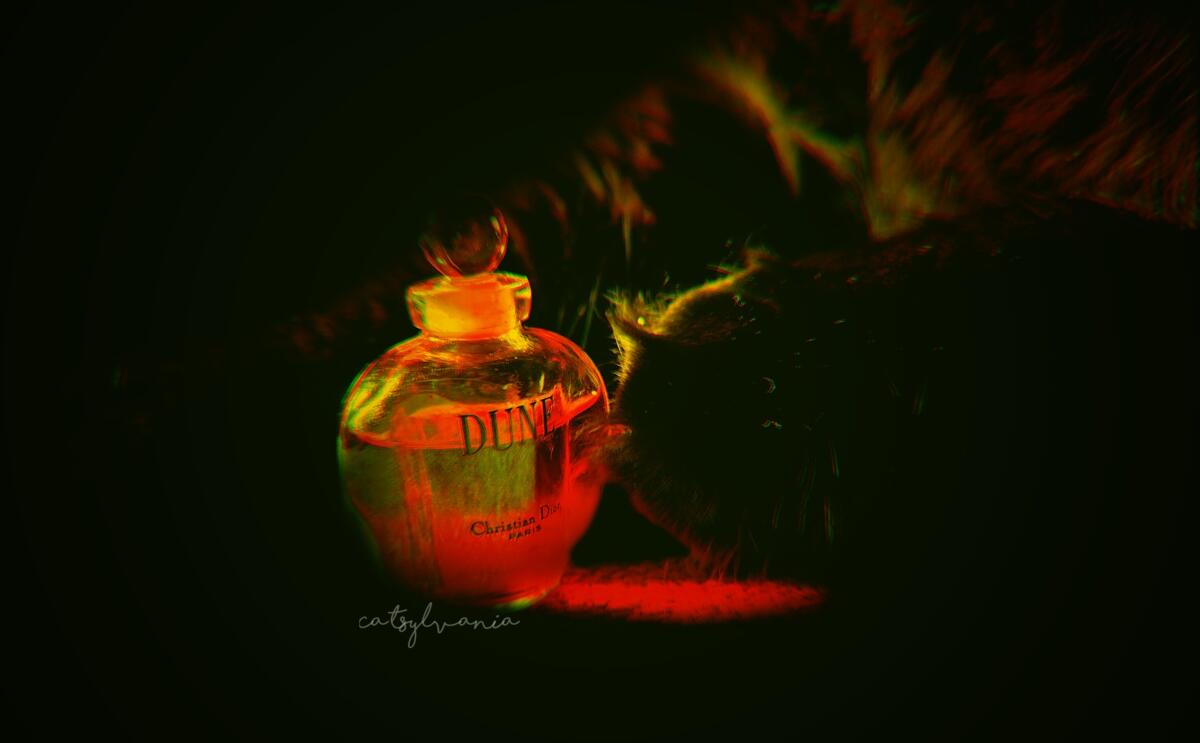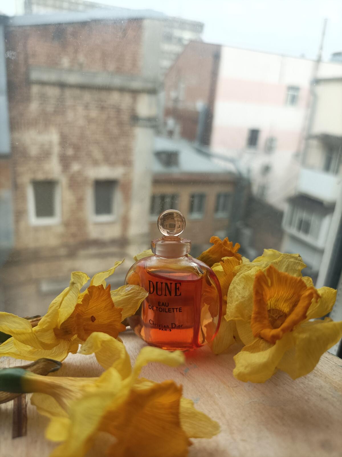 Vždycky chodím do parfumerií (je to tak trochu závislost, hahaha), ale tam, kde bydlím, je nedostatek dobrých parfémů a uvedení na trh... dneska jsem šla s kamarádkami na procházku a šla jsem kolem parfumerie... vůně se line sem a tam a já nemohla najít parfém, který by mi byl aspoň trochu příjemný... pak jsem bez rozmyslu řekla prodavačce: "Jé, zkusím tuhle Dune..." A pak jsem se rozesmála.