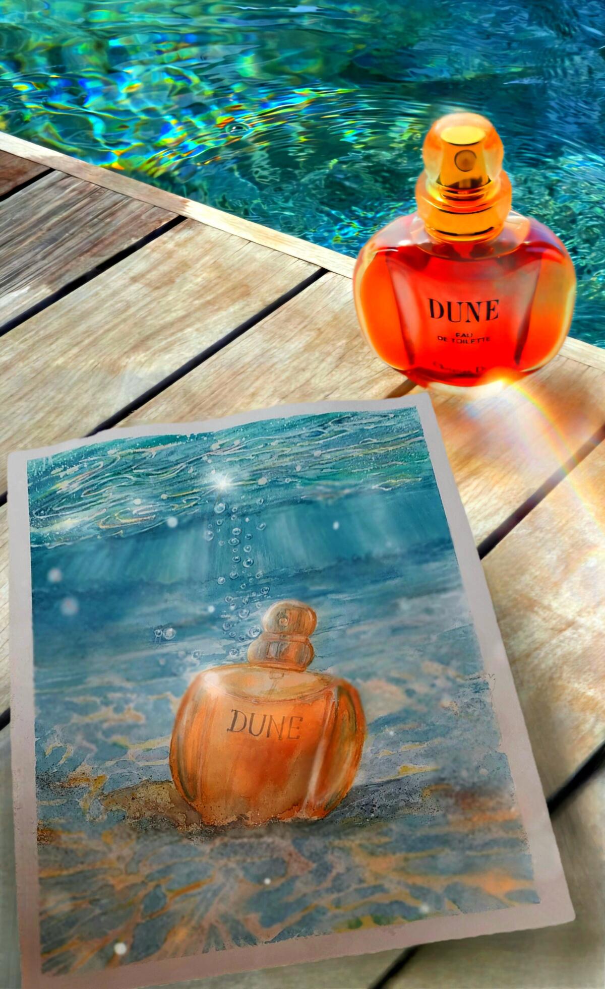 Parfémy jsou jako milenci. Jsou tu ty křiklavé, bláznivé, jsou tu ty, které jen hlásají: "Stála jsem hodně peněz, podívejte se na mě." Jsou tu zapomenutelné na jednu noc, na které se po koupi podíváte a říkáte si, co jste si mysleli, sladké dětské lásky a nástěnné květy, kterých si nikdo nevšimne a ke kterým se přivoní jen když je dostanete jako dárek. V tomto srovnání je Duna spřízněnou duší. Není jako žádný z ostatních parfémů na vašem stole, nenudí vás jediným -HLUČNÝM- tónem, nebolí vás z ní srdce ani hlava. Prostě jen tiše sedí, ale ach tak znatelně na vaší kůži, hřejivá, chytrá, komplexní, nezapomenutelná.