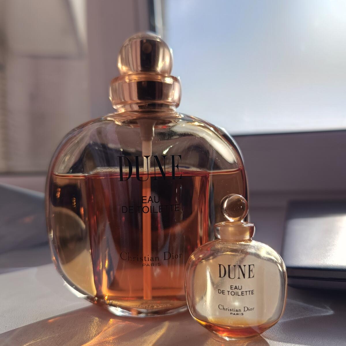 Dune podle Dior je Orientální Woody vůně pro ženy. Dune byl/a uveden/a v roce 1991. Dune byl/a vytvořen/a Jean-Louis Sieuzac, Nejla Barbir a Dominique Ropion. Vrchní tóny jsou Brazilské růžové dřevo, Aldehydy, Mandarinka, Bergamot a Pivoňka; střední tóny jsouLilie, Ylang-Ylang, Čekanka, Jasmín a Růže ; základní tóny jsou Jantar (ambra), Santalové dřevo, Benzoin, Dubový mech, Vanilka, Pačuli a Pižmo.