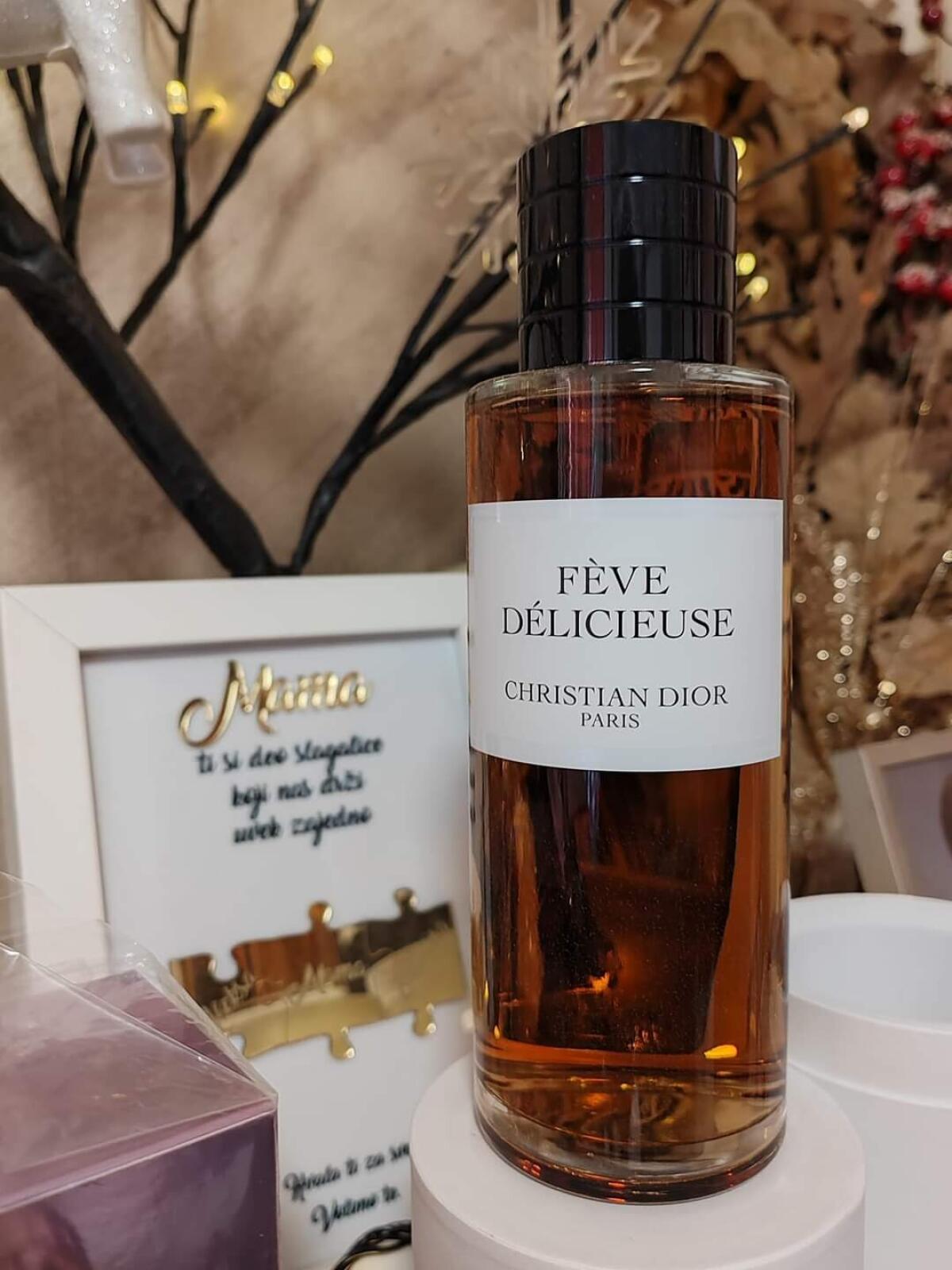 Fève Délicieuse podle Dior je Orientální Vanilla vůně pro ženy a muže. Fève Délicieuse byl/a uveden/a v roce 2015. "Nosem" za touto vůní je François Demachy. Vrchní tóny jsou Levandule, Máta a Bergamot; střední tóny jsouKyselá třešeň, Frézie a Jasmín ; základní tóny jsou Fazole tonka, Vanilka, Kakaový lusk, Karamel, Pralinka, Mléko, Benzoin, Santalové dřevo, Kůže a Cedr.