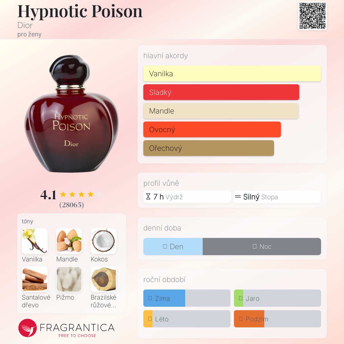 HYPNOTIC POISON je parfém pro smyslné, něžné, ohnivé, tolerantní, mateřské, nezávislé, tajemné, zasněné, romantické, inteligentní, sebevědomé, dermální ženy.