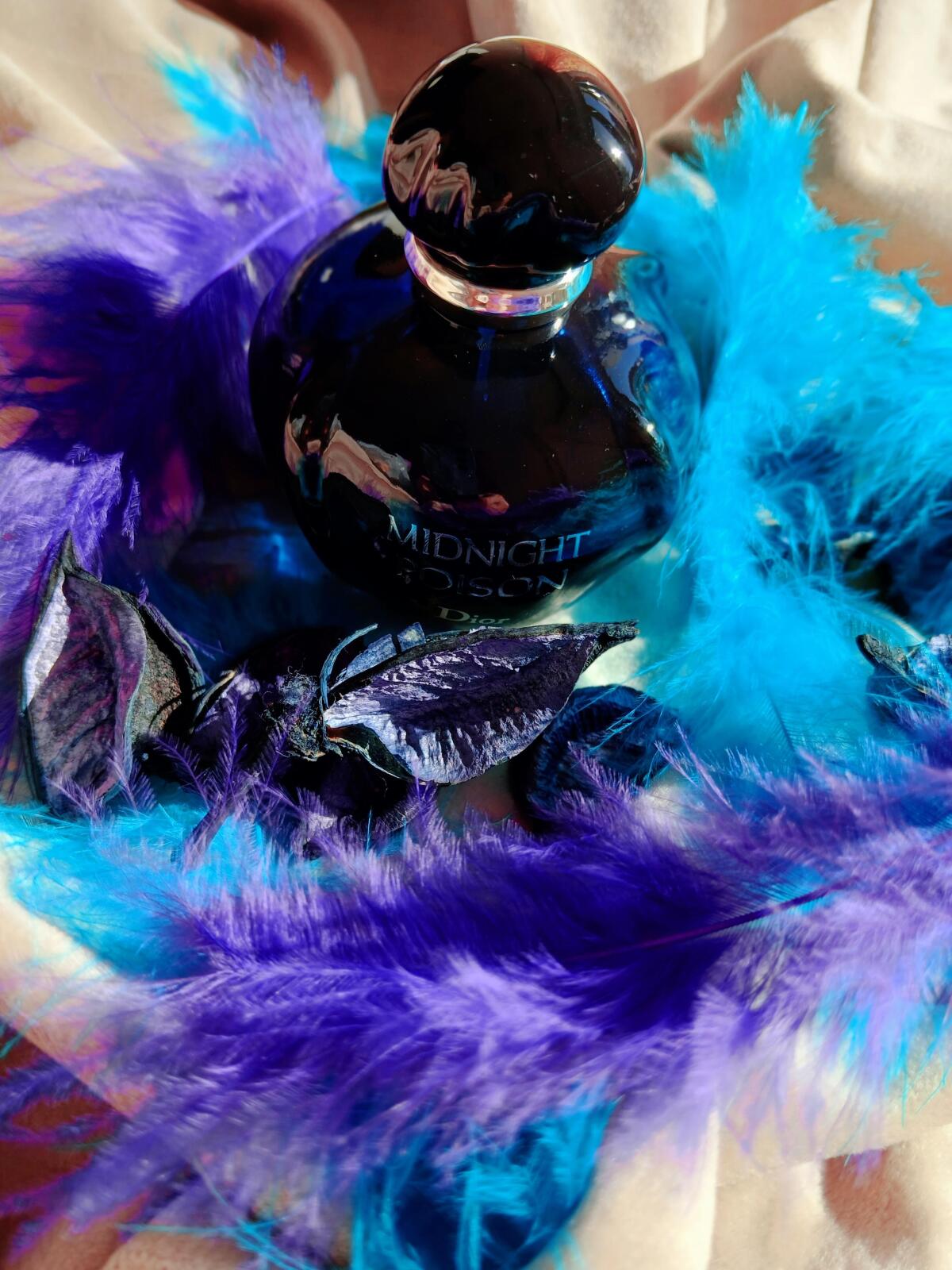 Když už jsme u Midnight Poison: otevřu krabičku (uvnitř tmavě modrá a černá, moc krásná) a už cítím citrusové tóny a pocit (nevím, který tón to je), který mě zasáhne vzadu v krku. Když jsem poprvé kýchla a ucítila tu počáteční explozi, vyděsila jsem se, v ústech mi zhořkla, myslela jsem, že mi nebude chutnat. Brzy poté se ale vůně změnila... Připomíná mi něco krémového, jako když kousnu do velmi sladké, jemné broskve, a právě tato vůně smíšená s růžemi na mé kůži většinu času převládá. Lidi, je to tak dobré... Je příjemná, je tak lahodná, vůbec není přeplácaná... Pořád se mi chce k ní čichat (ale ani nemusíte přiblížit zápěstí k nosu, protože mi stačí kýchnutí z krku, abych ji ucítila). Vášnivá. Příliš smyslná... Je to taková krémová růže, pocit, jako když se zakousnete do měkké zralé broskve, a stále lehké pálení pačuli... Příliš krásná, příliš voňavá, příliš lahodná.