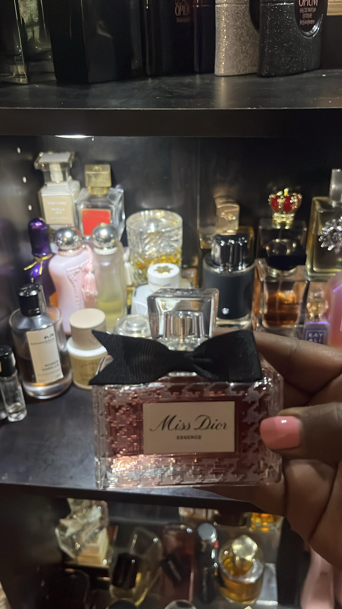 Miss Dior Essence podle Dior je Chypre Floral vůně pro ženy. Toto je nová vůně. Miss Dior Essence byl/a uveden/a v roce 2025. "Nosem" za touto vůní je Francis Kurkdjian. Vrchní tóny jsou Ostružina a Černý bez; střední tóny jsouJasmín Sambac a Jasmín ; základní tóny jsou Dřevité tóny a Dub.