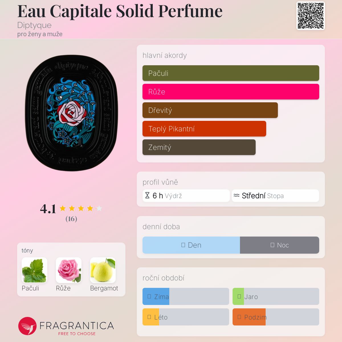 Eau Capitale Solid Perfume podle Diptyque je Chypre vůně pro ženy a muže. Eau Capitale Solid Perfume byl/a uveden/a v roce 2020.