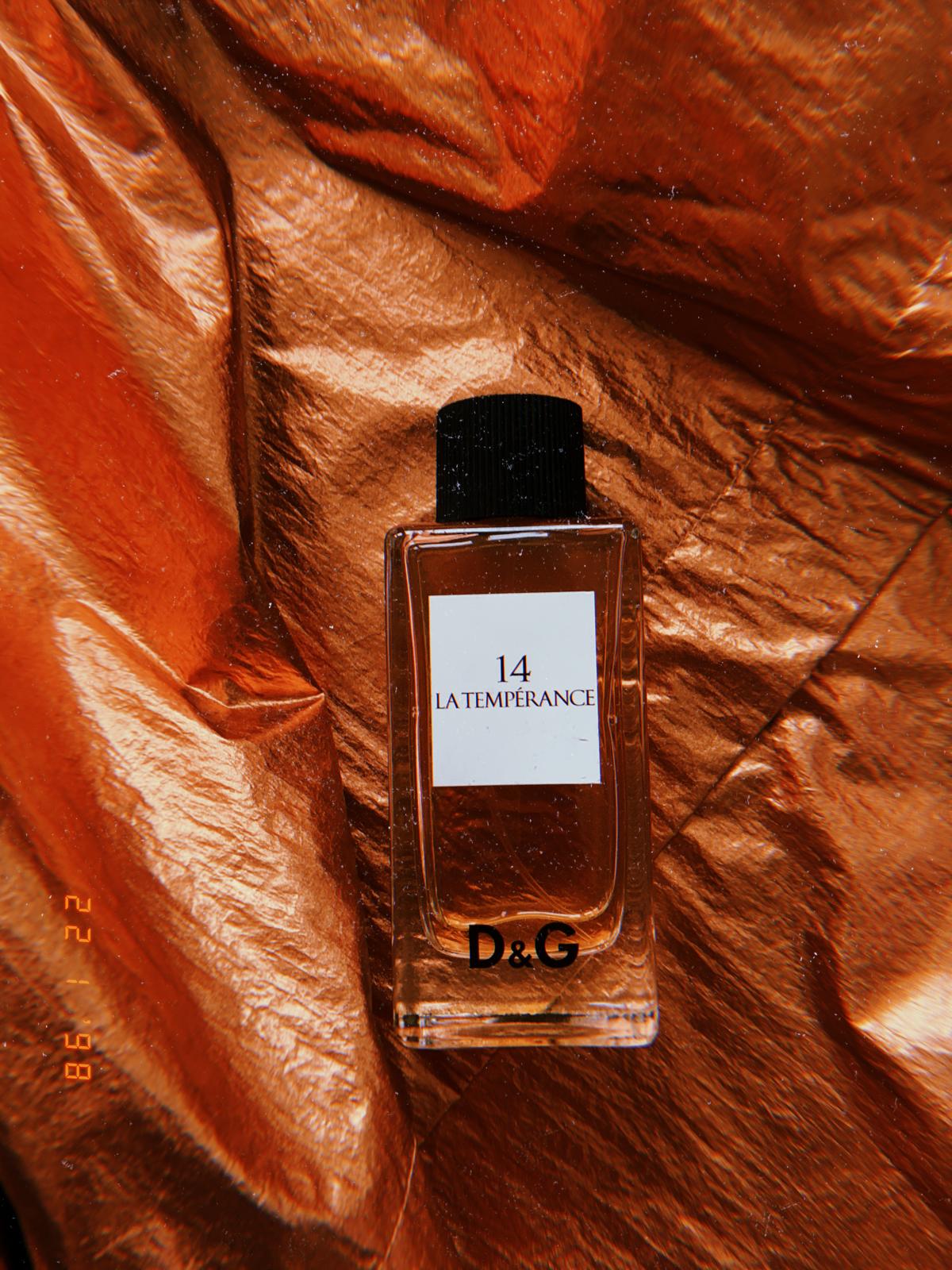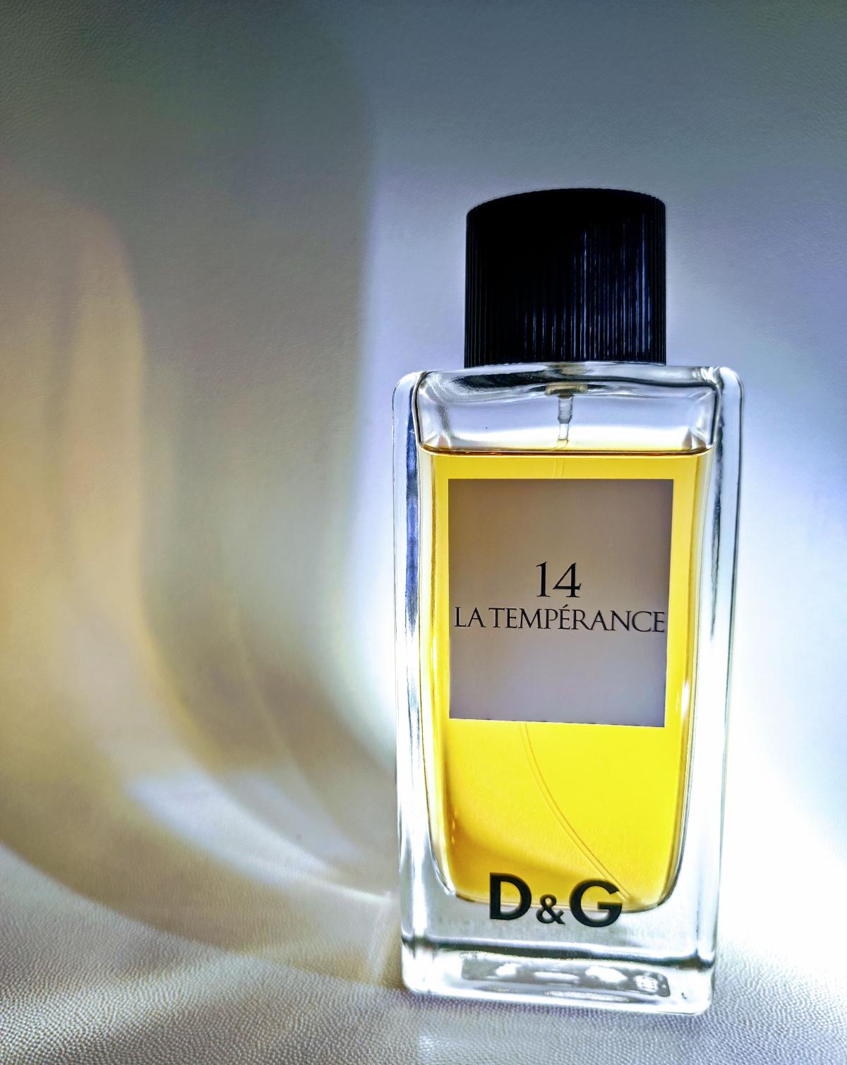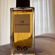 D&G Anthology La Temperance 14 podle Dolce&Gabbana je Floral Woody Musk vůně pro ženy. D&G Anthology La Temperance 14 byl/a uveden/a v roce 2011. Vrchní tóny jsou Ambrette (přírodní pižmo) a Růžový pepř; střední tóny jsouKosatec, Orris, Ibišek a Růže ; základní tóny jsou Orientální tóny, Pižmo a Pačuli.