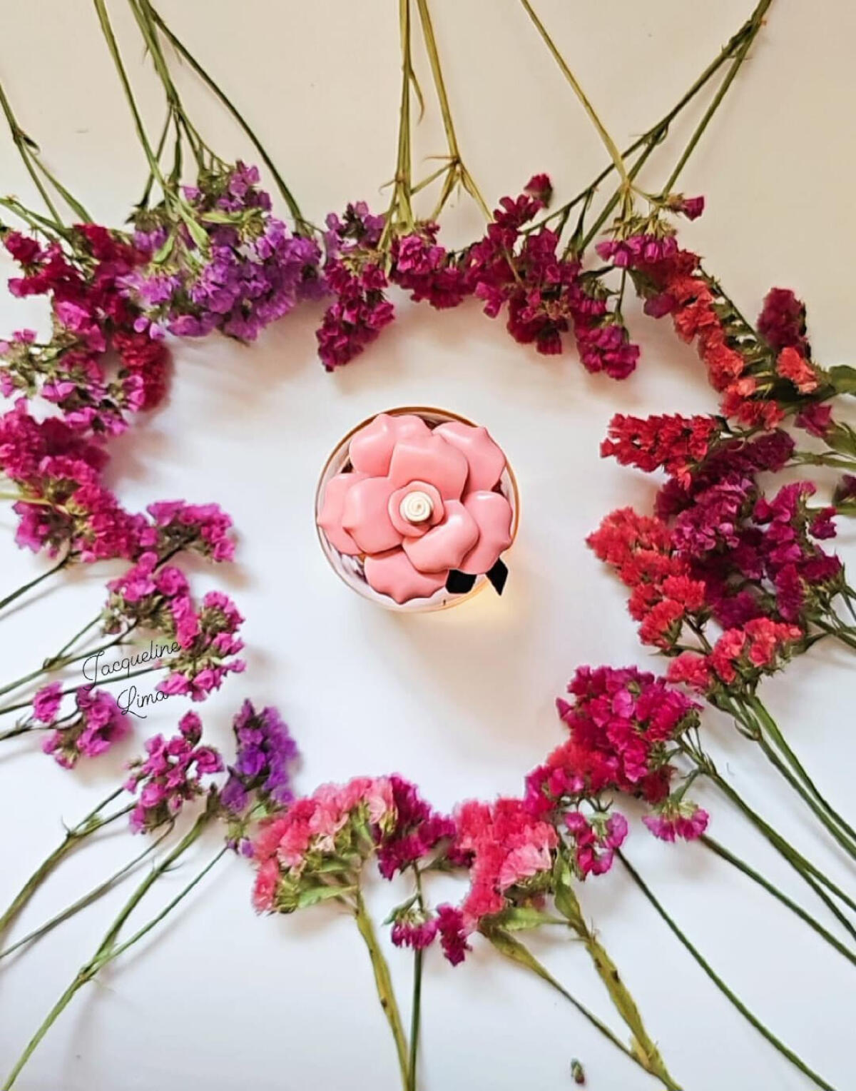 Flakon je růžovo-růžový, uzávěr osobně nemám ráda, tentokrát je alespoň stužka černá. Ale především se mi líbil vnitřek.