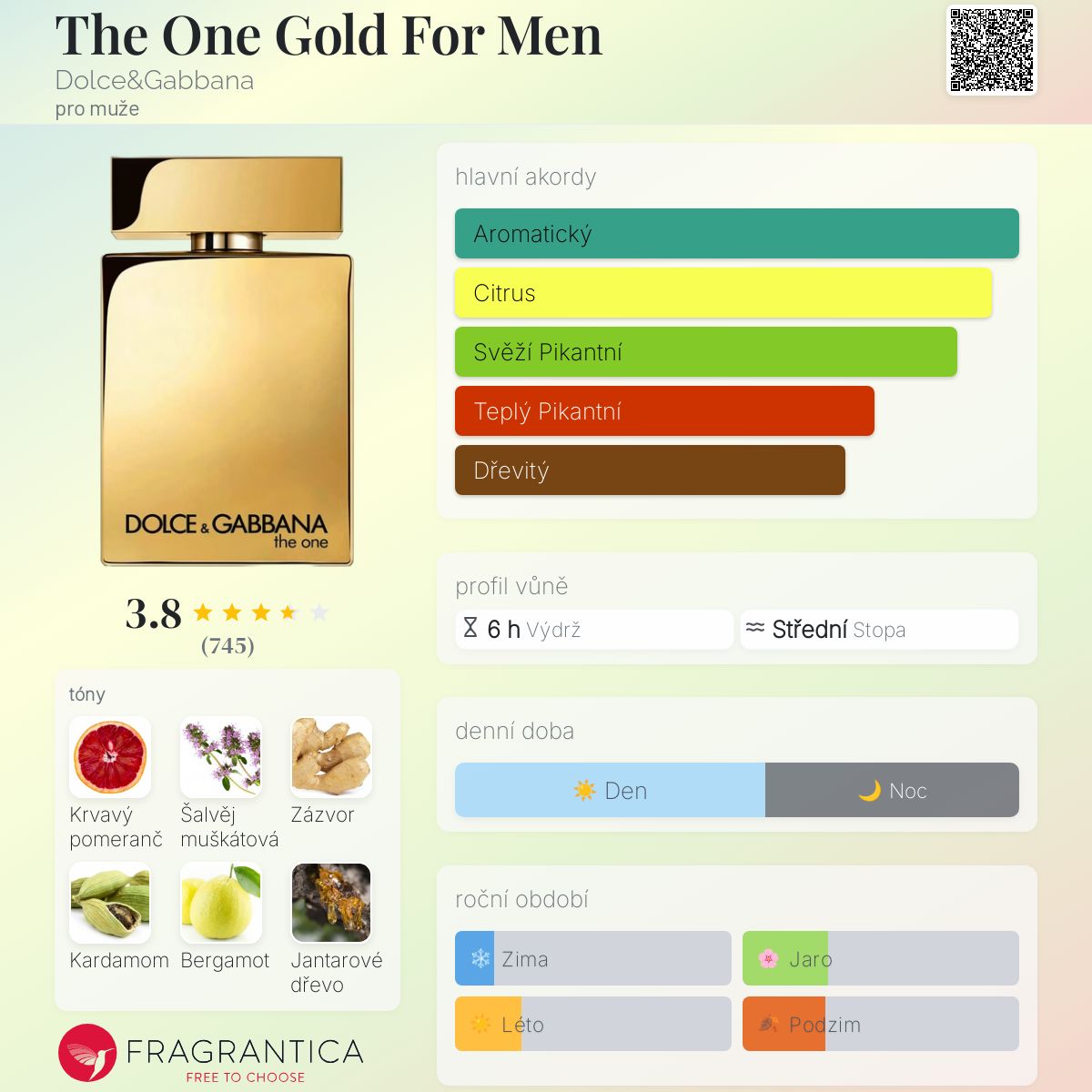 The One Gold For Men podle Dolce&Gabbana je Aromatic Spicy vůně pro muže. The One Gold For Men byl/a uveden/a v roce 2021. The One Gold For Men byl/a vytvořen/a Rodrigo Flores-Roux, Michel Girard a Olivier Pescheux. Vrchní tóny jsou Krvavý pomeranč, Zázvor a Sicilský bergamot; střední tóny jsouŠalvěj muškátová, Kardamom a Pelargónie ; základní tóny jsou Jantarové dřevo, Haitský vetiver a Pačuli.