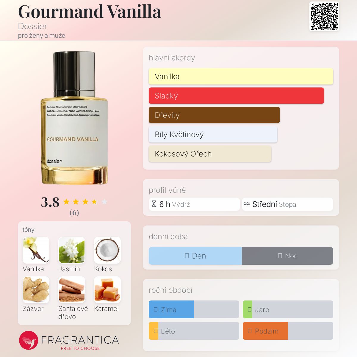 Gourmand Vanilla podle Dossier je Orientální Vanilla vůně pro ženy a muže. Toto je nová vůně. Gourmand Vanilla byl/a uveden/a v roce 2025. Vrchní tóny jsou Zázvor a Mandle; střední tóny jsouJasmín, Kokos, Ylang-Ylang a Pomeranč ; základní tóny jsou Vanilka, Santalové dřevo, Karamel a Fazole tonka.