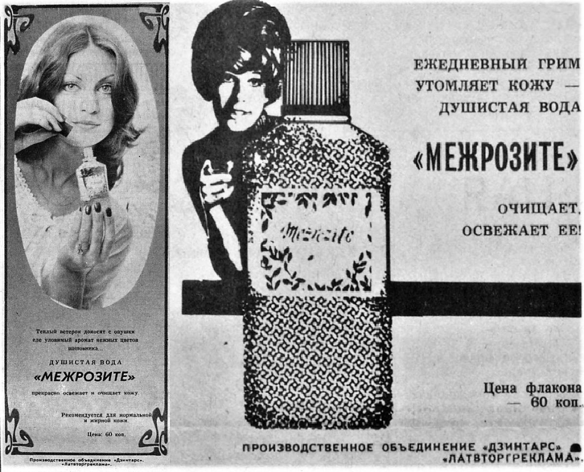 Mežrozīte (Шиповник) podle Dzintars je Floral vůně pro ženy a muže. Mežrozīte (Шиповник) byl/a uveden/a v roce 1971. "Nosem" za touto vůní je Bronislava Schwarzman. Vrchní tóny jsou Borovice, Citrón, Zelené tóny, Eglantská růže, Lesní jahoda a Neroli; střední tóny jsouRůže, Pelargónie, Ylang-Ylang, Jasmín, Hyacint, Kořen orris, Karafiát a Vetiver ; základní tóny jsou Santalové dřevo, Cibetka a Galbanum.